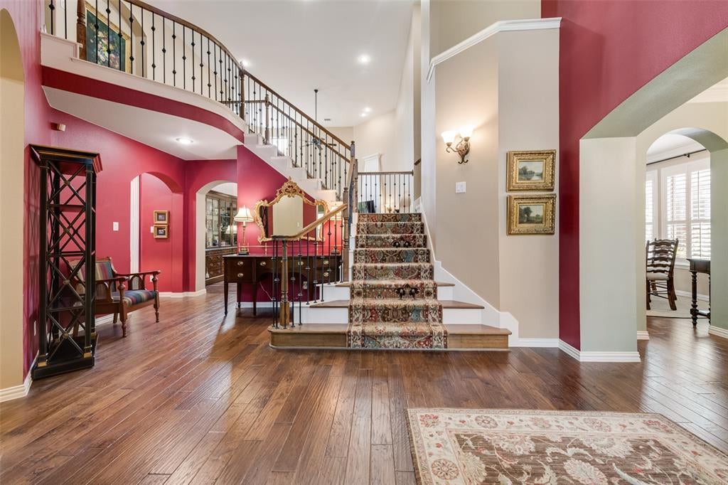 With an inviting open entrance and tremendous flow for entertaining, this home is ideal for any buyer on the go. The location provides easy access to all of DFW from any of the main traffic arteries. Numerous interior and exterior upgrades: customized kitchen cabinet interiors, induction cooktop(original gas cooktop is available), large and functional master closet, laundry cabinets galore, and numerous walk in closets. There is 5.1 sound system wiring in the LR, and 5.1 wired speakers in the Media-Workout-Hobby room. There is a Game-Music Room on the second floor along with the secondary 3 bedrooms and 2 baths. The back yard is open with custom fencing extended to the front on both sides, a full width electric gate, installed turf for easy maintenance and a hidden garden shed built into the fencing. Lighting below the fence header and an enlarged patio add ambiance to evening entertaining. Tennis courts, pickle ball courts, walking trails and walking distance to the elementary school and Allen rec center add to conveniences of new shopping and entertainment in the area. Agent-owner home.