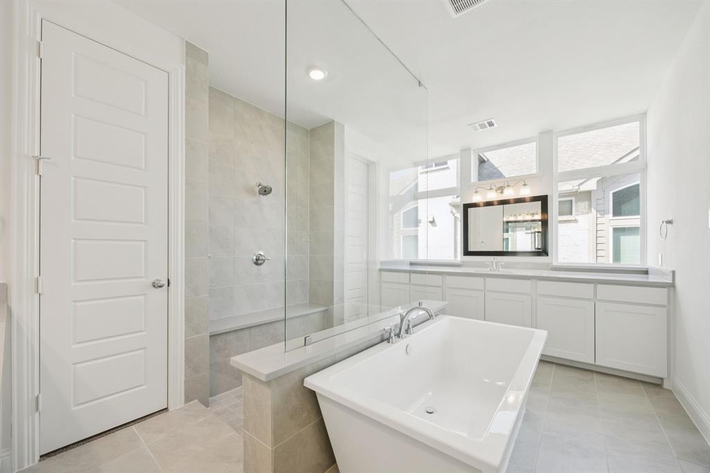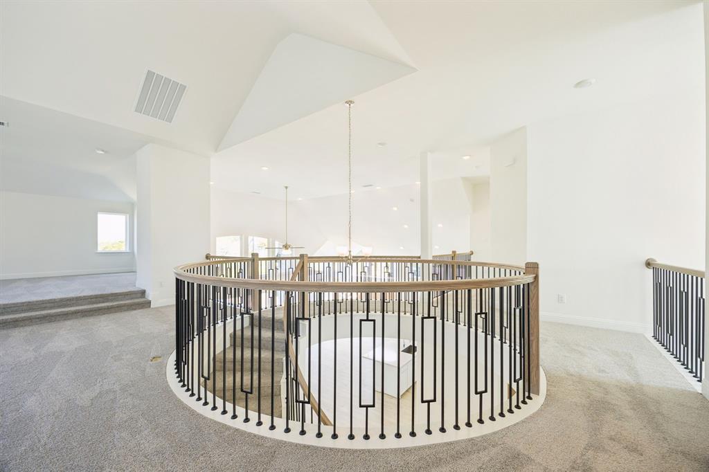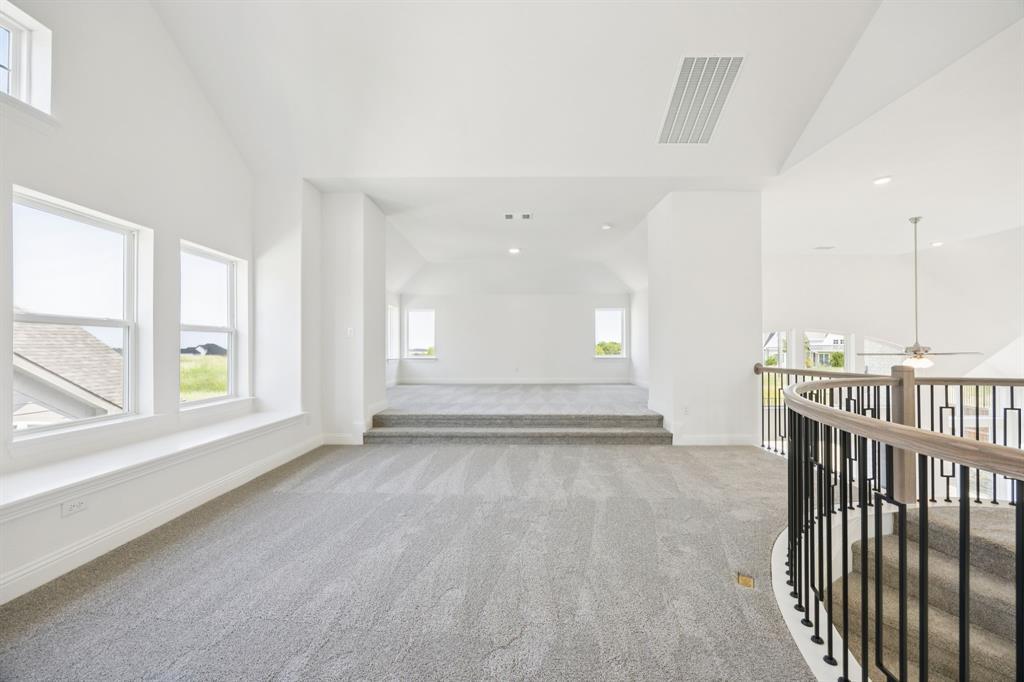 Welcome to this stunning Grand Homes with new construction, Just Completed, nestled in the highly sought-after Breezy Hill community in Rockwall. This East-facing home boasts a spacious swing garage & is located just steps away from the neighborhood's amenities, including a pool, playground, & scenic trails. From the moment you approach the contemporary front door, you’ll be greeted by a truly modern design with light colored brick & stone. Inside, the home features an abundance of natural light, high-end wood floors, & 8-foot interior doors with sleek lever hardware. The layout is perfect for families, offering three bedrooms downstairs & three bedrooms upstairs, ensuring ample space for everyone. The expansive family room is highlighted by a striking groin-vaulted ceiling & opens seamlessly to a large covered back patio, making it an ideal space for entertaining. The room also includes flat-screen TV wiring, providing the perfect spot for movie nights. In addition to the family room, the home offers a dedicated home office or den, a game room upstairs for fun & relaxation, & a media room pre-wired for surround sound, ready to enjoy your favorite movies. The chef-inspired gourmet kitchen features a large island with light granite slab countertops, double ovens, a five-burner gas cooktop, & a custom vent hood. You'll appreciate the convenient pots & pans drawers, a trash can drawer, a full bowl sink, island & a walk-in pantry, all designed to make cooking a pleasure. The luxurious primary suite is a true retreat, with a spa-like bath featuring a freestanding tub, a frameless glass shower with tile extending to the ceiling, & dual vanities. All the bathrooms throughout the home are designed with sleek, rectangular sinks. Built with energy efficiency in mind, this home is Energy Star certified, ensuring low utility bills & comfort year-round. With R38 insulation & 2x6 construction, this home offers superior quality & energy performance.