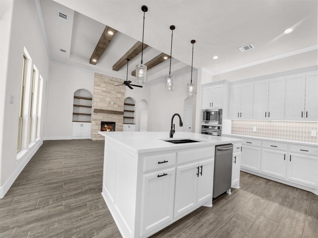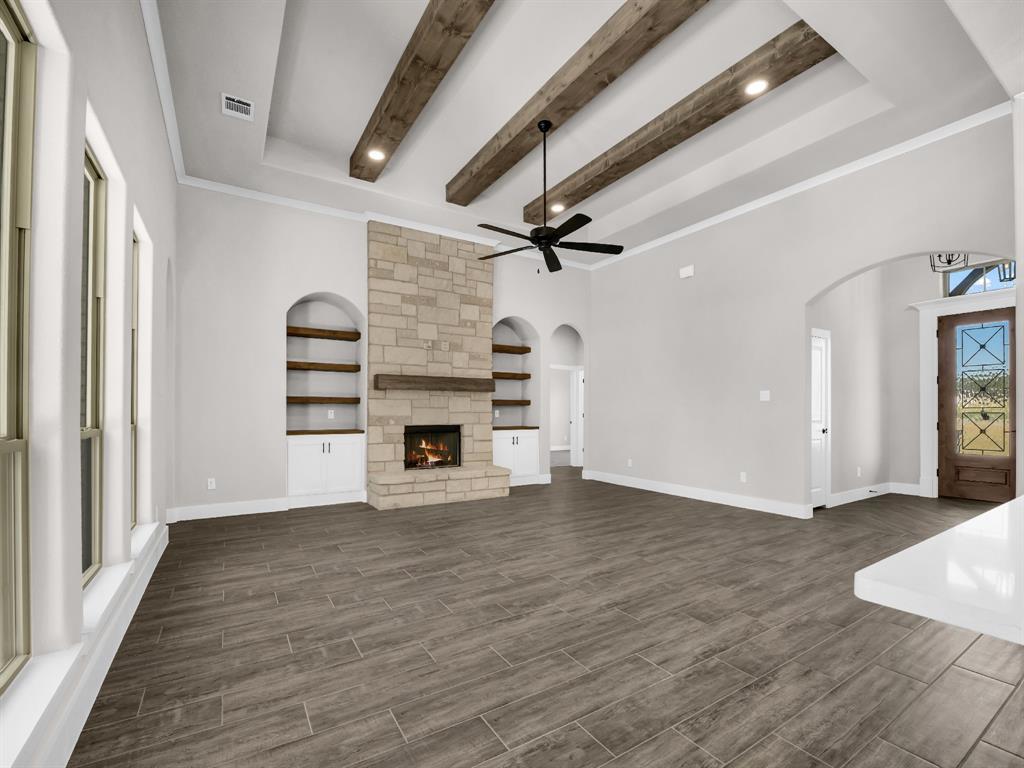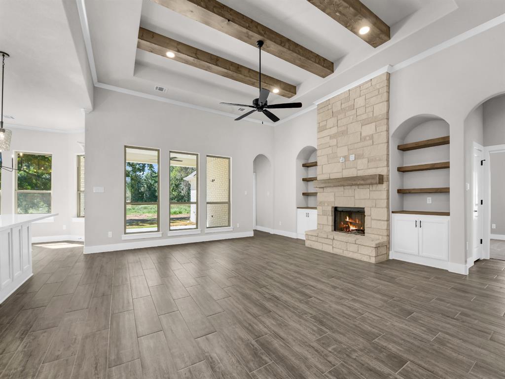 Charming LBK Home on 1 acre tract in Springtown ISD. This 2328 sq ft home has 4 bedrooms and 2 bathrooms with a dining room. This home has an open floor plan with split bedrooms. Large kitchen with ample cabinet space, large eat at island, quartz countertops, decorative light fixtures, and under mount lighting.Large living room, stone fireplace, large windows allowing great nature light. Large primary bedroom with primary bathroom boasting double vanities, separate shower and tub, and large walk in closet. Nice sized spare bedrooms with large closets. This homes has a 2 car garage with side entry and covered back patio. LBK Homes has all exterior walls spray foamed and CAT 6 hardwiring to all rooms for tv and streaming. Builder to pay title and survey.BUILDER OFFERING $25,000 CONCESSION!
