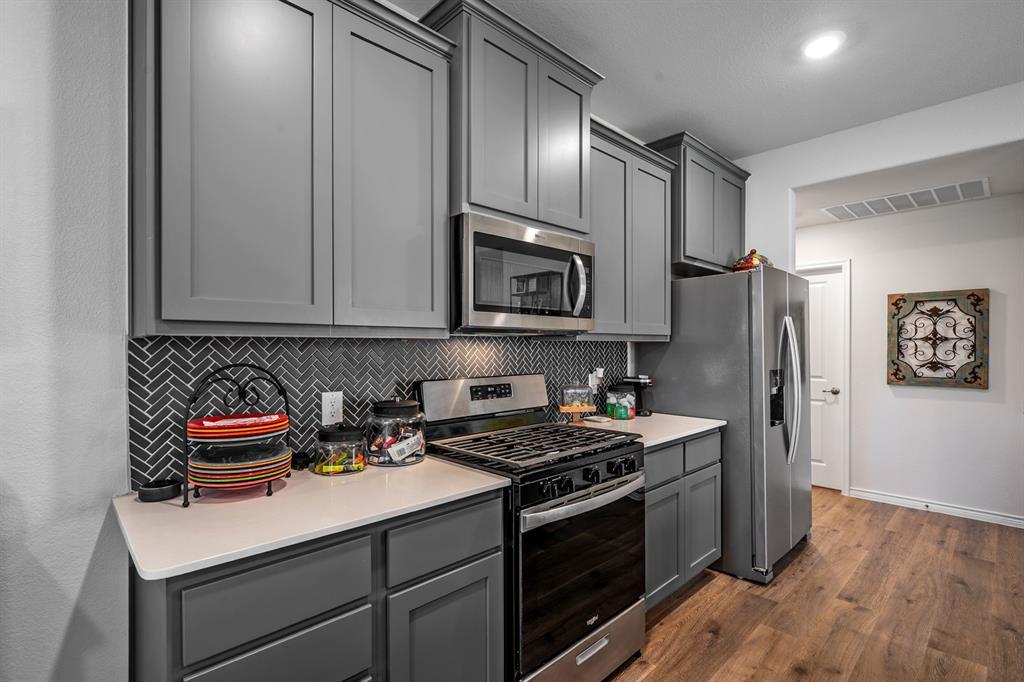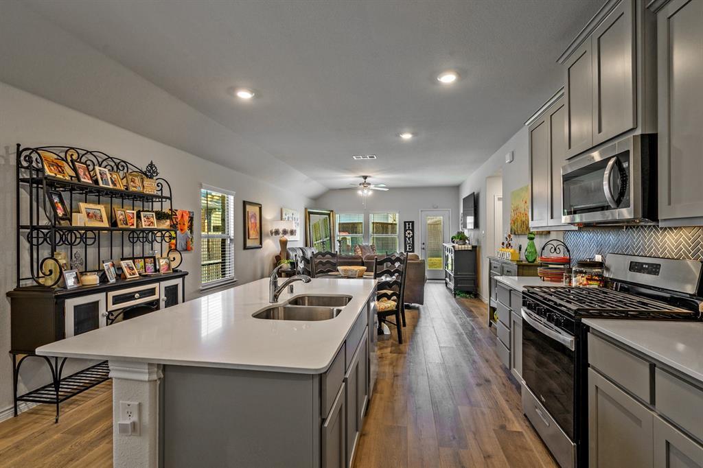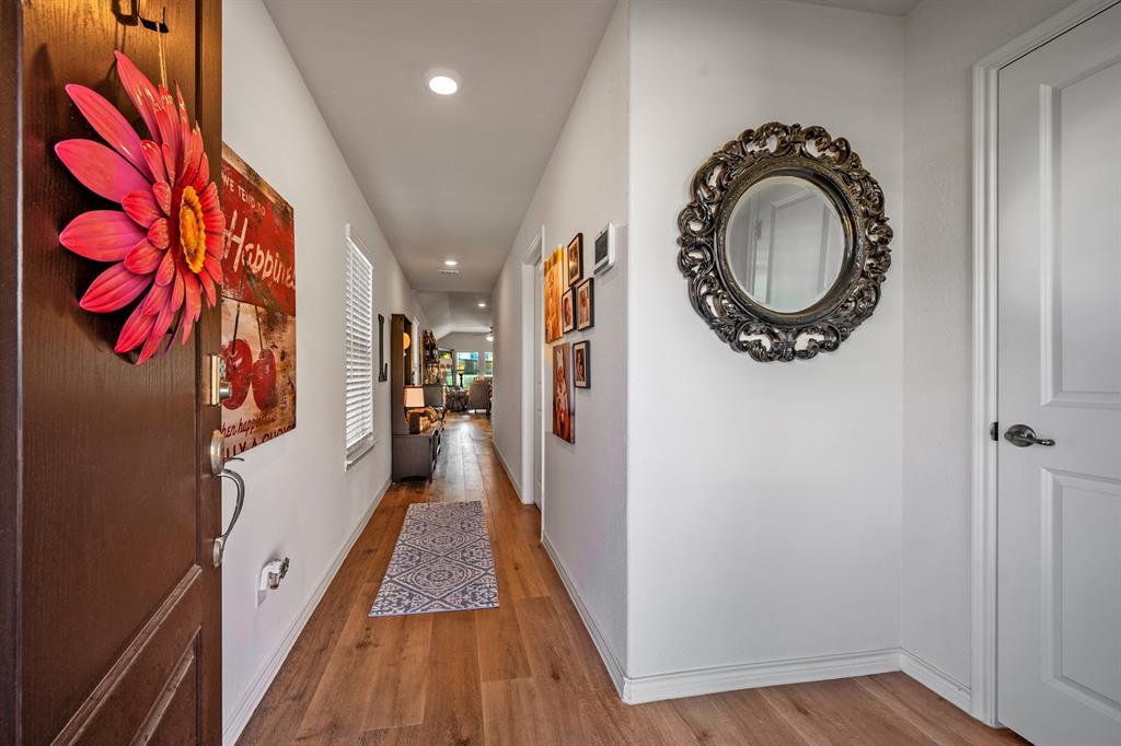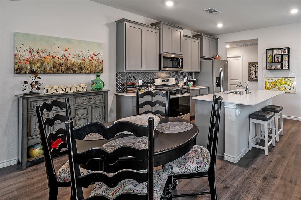 IMMACULATE DOLLHOUSE in popular ANNA TOWN CROSSING Ready for NEW OWNERS! SPOTLESS home with 3 bedrooms, OPEN kitchen WITH BREAKFAST BAR, spacious FAMILY ROOM with BRIGHT BK nook! ALL the UPGRADES-QUARTZ, SMOOTH COOKTOP, STAINLESS STEEL appliances, decorative LIGHTING, custom PAINT, CERAMIC TILE, LVP FLOORING, CAN lighting package! RADIANT BARRIER, COVERED BACK PATIO, PRETTY LANDSCAPING, STONE elevation and much much more! NEW ROOF, GUTTERS and GARAGE DOOR in 2025! Just a short walk to the COMMUNITY POOL, PARK, HIKE and BIKE trails and PLAYGROUND! OUTSTANDING ANNA ISD! Welcome to ANNA TOWN SQUARE neighborhood close to schools, shopping and parks!