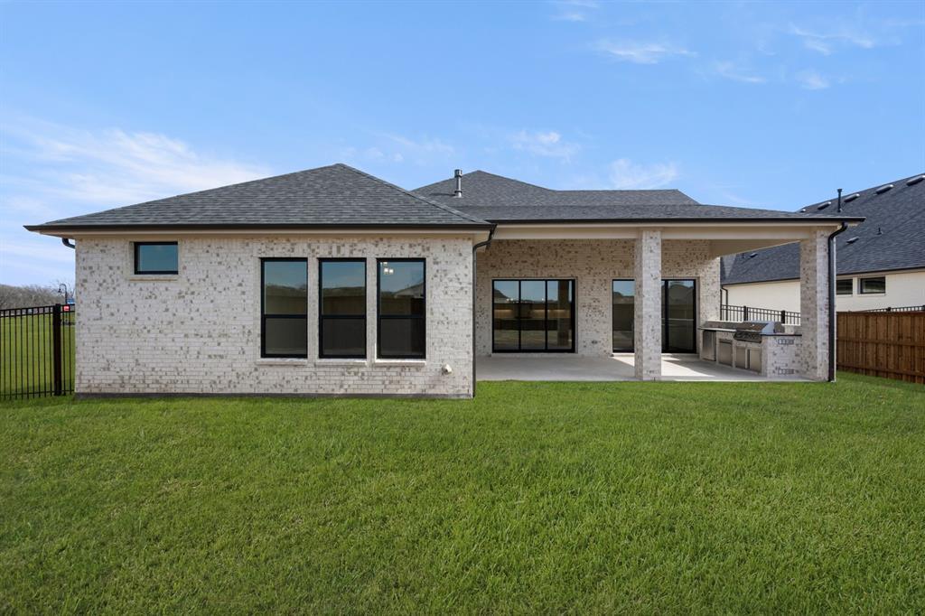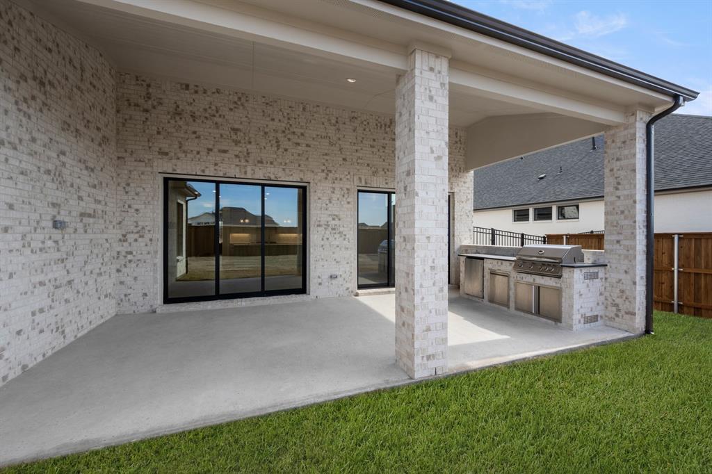 MLS# 21075283 - Built by Drees Custom Homes - Ready Now! ~ An expansive open kitchen, family, and dining area welcomes you with soaring vaulted ceilings and a wall of sliding glass doors that flood the space with natural light and extend your living outdoors to the covered patio and outdoor kitchen. The luxurious owners suite offers a private retreat, featuring charming barn doors leading into a spa-inspired bath and an oversized walk-in closet you will love. When it is time to unwind, enjoy movie nights in the beautiful media room. The perfect one-story design for both everyday living and entertaining!