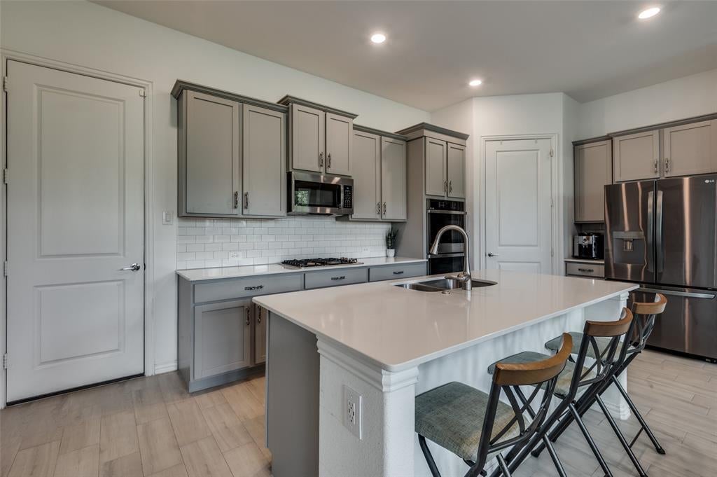 Welcome to The Elements 55+ at Viridian, where elegance meets effortless living. This beautifully maintained 1,823 sq. ft. home offers an open living area overlooking a peaceful green space that will never be developed. The gourmet kitchen features double ovens, granite countertops, and modern finishes, with a spacious dining area perfect for entertaining. Three bedrooms include one ideal as a home office. Enjoy custom window coverings, storm doors on the front, Everlights programmable exterior lighting, and a gardener’s dream backyard. This lock-and-leave home offers low-maintenance living with easy access to major highways, Dallas, and Fort Worth. Community amenities include pickleball, fitness center, trails, pool with grilling area, and active social events.
