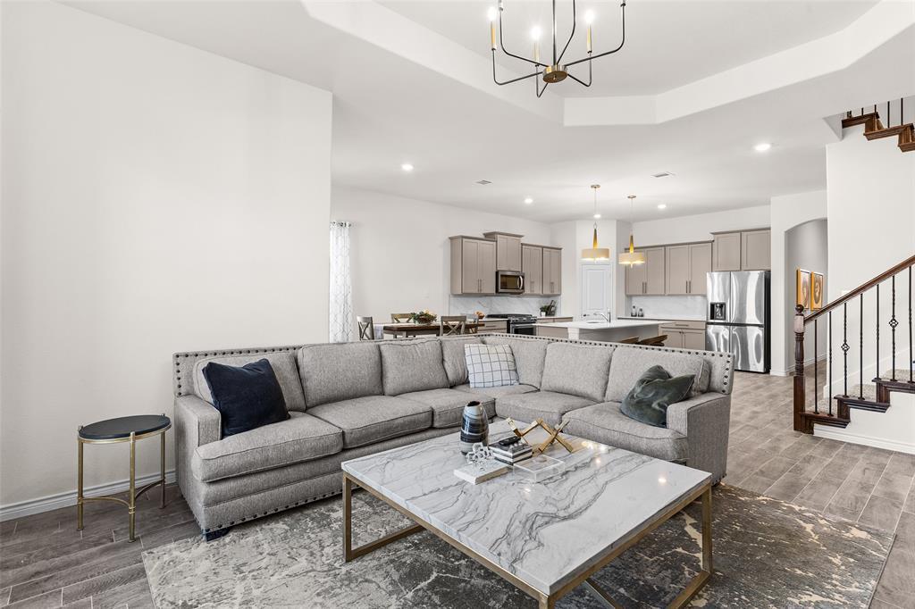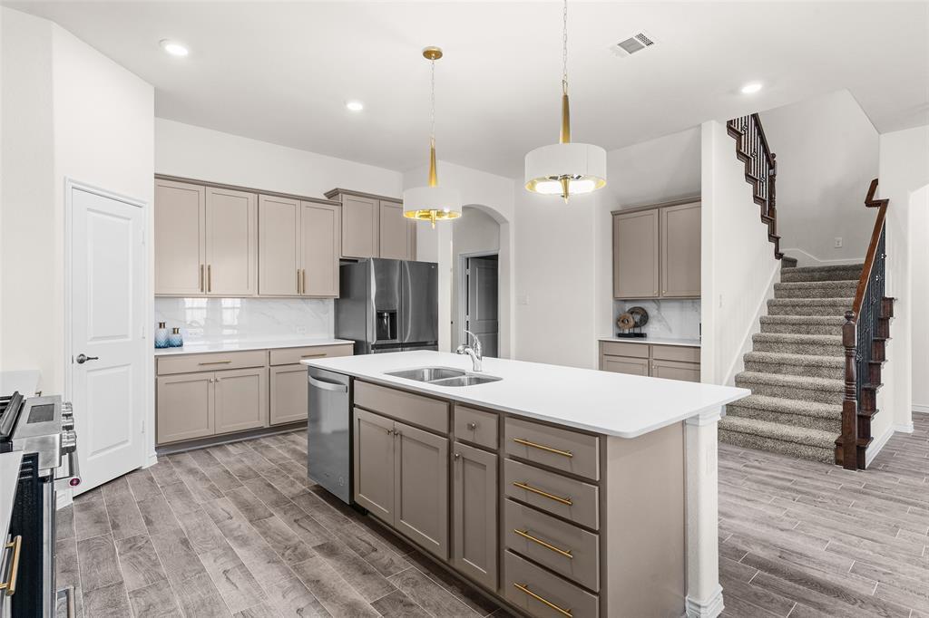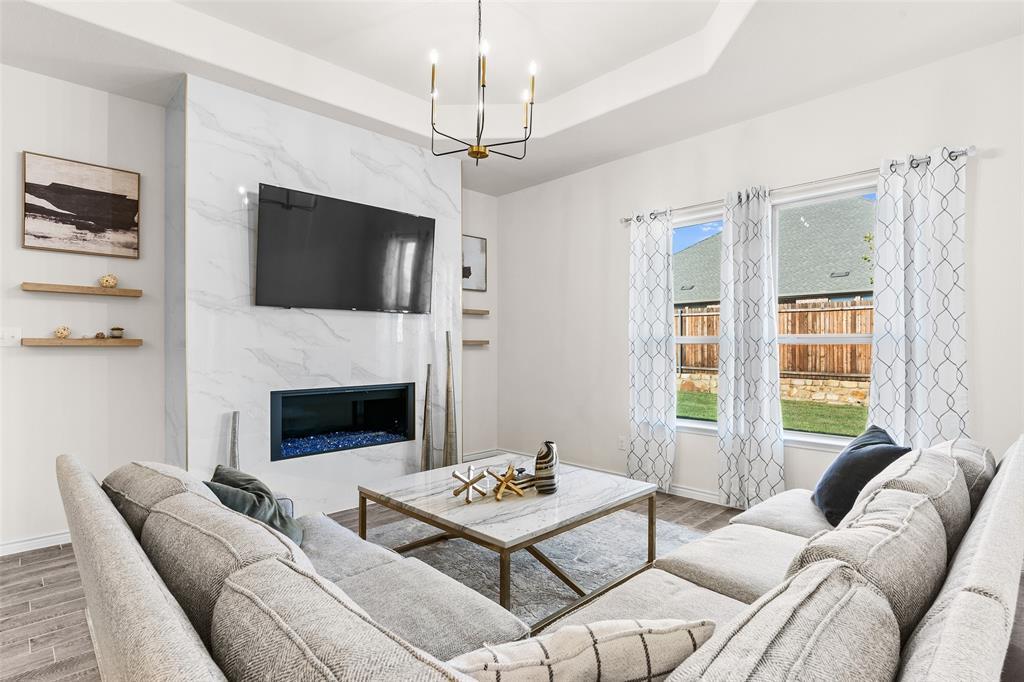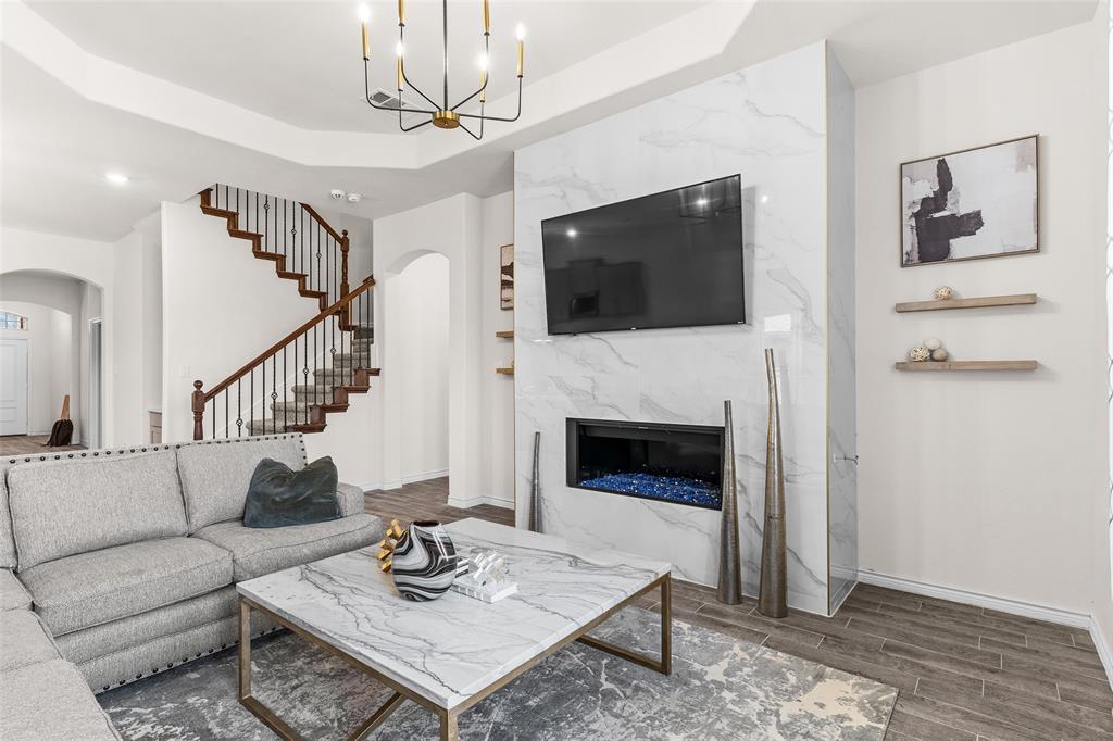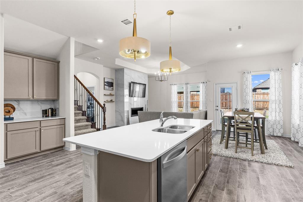 Check out this stunning move-in ready gem in the master-planned community of Silverado! This 4-bedroom, 3-bath home offers the perfect blend of modern design and everyday comfort. The warm, inviting entry opens to an oversized kitchen featuring a large quartz island, matching backsplash, and abundant cabinetry. Designer light fixtures elevate both the kitchen and living areas, where a recently upgraded modern gas fireplace steals the show!