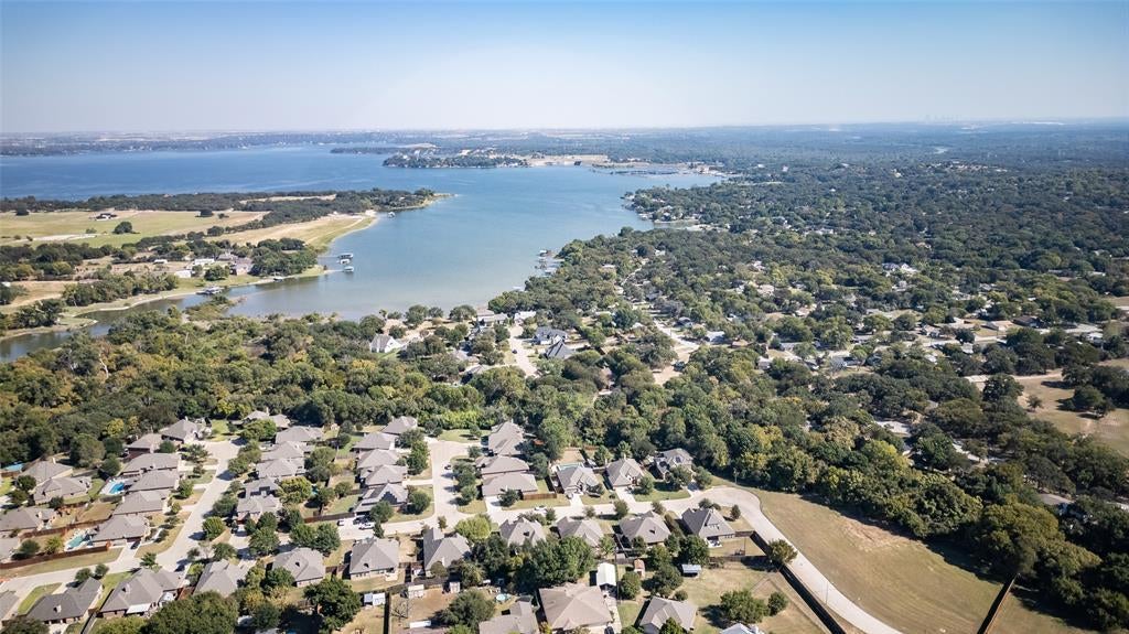 Gorgeous single-story in Escondido, the gated community just off Eagle Mountain Lake. This 4-bed, 2-bath home pairs an open layout with flexible spaces—a formal dining, living or study. The kitchen features granite counters, an island, walk-in pantry, and excellent flow to the living room with an electric brick fireplace. Private owner’s retreat with jetted tub, separate tiled shower, and generous walk-in closet -13' x 9' with built ins! Outdoors, enjoy covered patio lush trees and full landscaping with sprinkler system on a near quarter-acre lot. Storage shed in back yard for yard equipment or extras. Minutes to lake access (see aerial photos) and Hwy 199 for an easy Fort Worth commute—come enjoy gated serenity near the water.