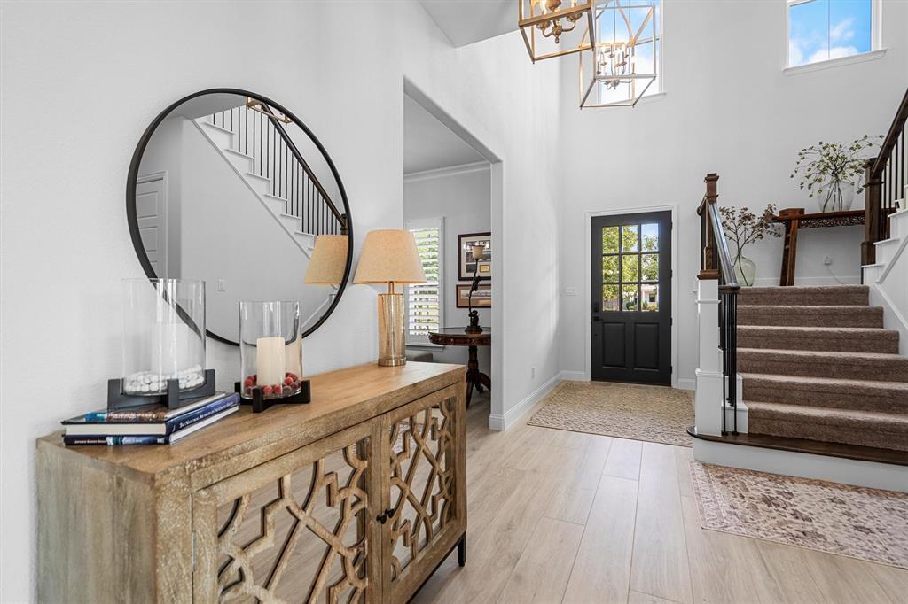 NEW PRICE — BEST VALUE IN PECAN SQUARE at $975,000 Experience Luxury living at 408 N Pecan Pkwy, East Facing and one of the largest and most stunning refined homes ever built in Pecan Square. From the moment you arrive, you’ll sense the difference a rare balance of sophistication, scale, and modern comfort that feels like stepping into a designer model home. Every detail was intentionally curated to draw you in and make you feel at home. The open concept floor plan flows effortlessly with soaring ceilings, expansive living areas, and walls of glass that invite natural light to fill the space. A disappearing glass door slides flush into the wall, perfectly blending indoor and outdoor living, imagine entertaining effortlessly as the Texas breeze flows through your home. The chef’s kitchen is a masterpiece of form and function, featuring custom cabinetry, quartz countertops, high end appliances, and designer lighting. Every corner whispers quality, from the premium flooring and thoughtful textures to the elegant finishes that elevate every room. Retreat to your spa inspired primary suite, complete with a luxurious soaking tub, extra large walk in shower with dual shower heads . Multiple living areas, an executive office plus a secondary pocket office, and oversized bedrooms offer space for everyone and every need. Positioned Located in a premium corner lot in the heart of prestigous Pecan Square, this home connects you to one of Northlake’s most desirable master planned communities, filled with resort style amenities, pools, fitness centers, trails, parks, and a strong sense of community. If you’ve been searching for a residence that captures the essence of luxury, livability, and light, this is your moment. Come experience 408 N Pecan Pkwy a home where elegance meets everyday life.
