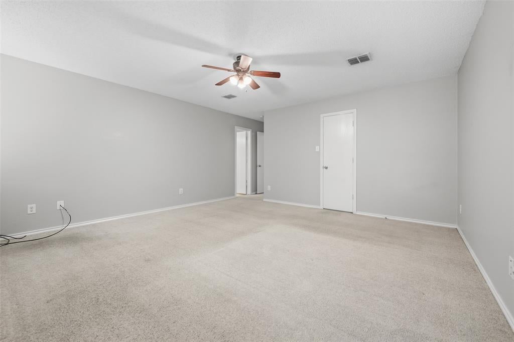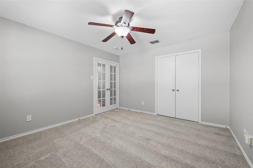 The primary suite is a relaxing retreat with a large walk-in closet and a garden tub perfect for unwinding. The secondary bedrooms offer great flexibility with plenty of space for family, guests, or a home office. The front bedroom, currently being used as an office, features French doors that add both style and function.