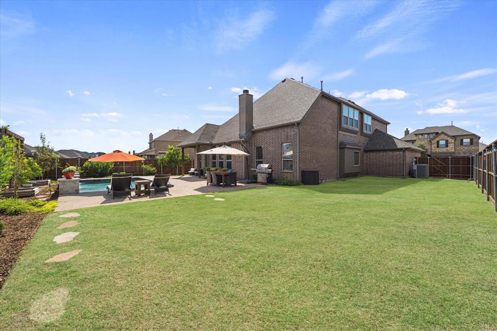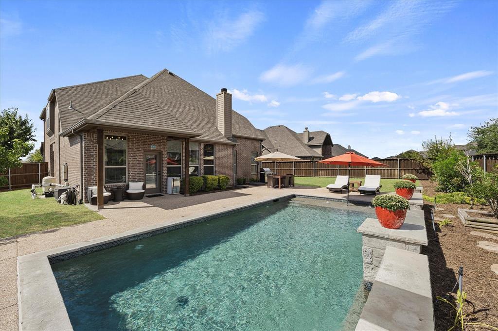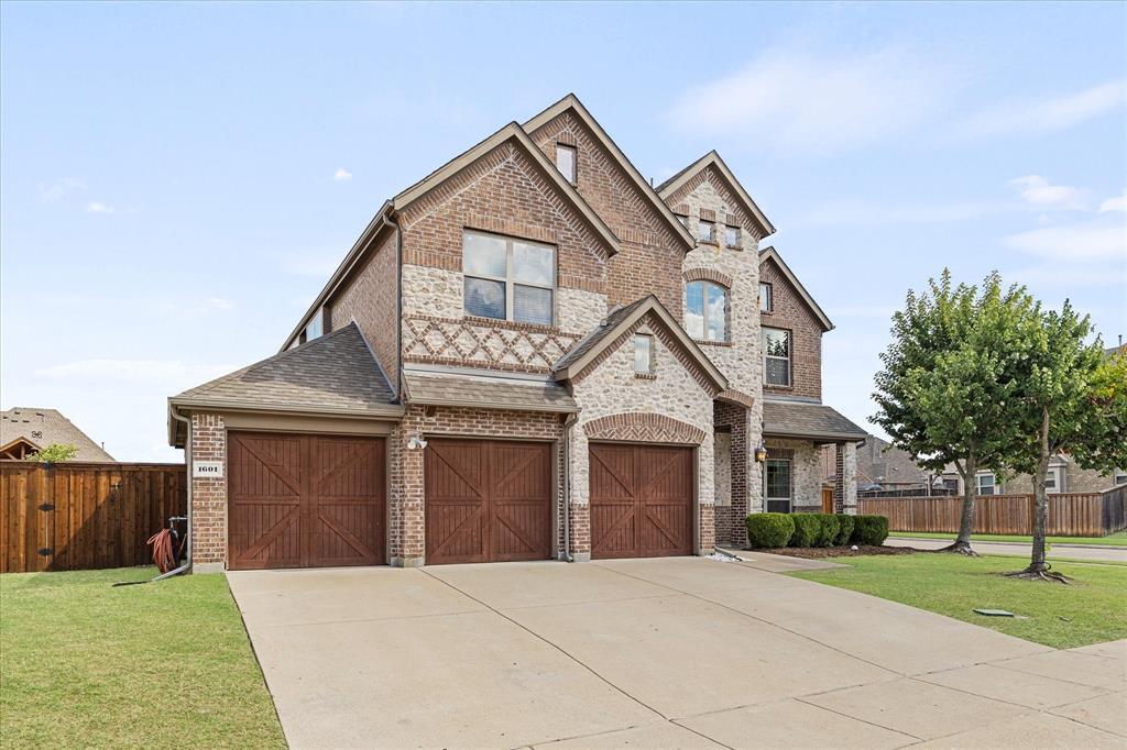 Stunning brick and stone home on large corner lot. This home features 3 car garage, 4 bedrooms, 2.5 bathrooms, large living, game room along with a great kids retreat, private office, recently updated open kitchen and breakfast room, engineered hardwood floors, designer lighting in formal dining and entry, built in niches, generous laundry room, 3 additional bedrooms are all upstairs, half bath is great for guests. Master bath has garden tub, custom walk-in closet with designer lighting, separate Shower and dual vanities. Family room has cozy fireplace with tons of windows overlooking the beautifully landscaped back yard. Step outside to the amazing inground saltwater pool and enjoy the sounds of the built in waterfalls. Backyard also offers plenty of room for additional sitting and play areas, beautifully landscaped with recently added board on board cedar fencing.