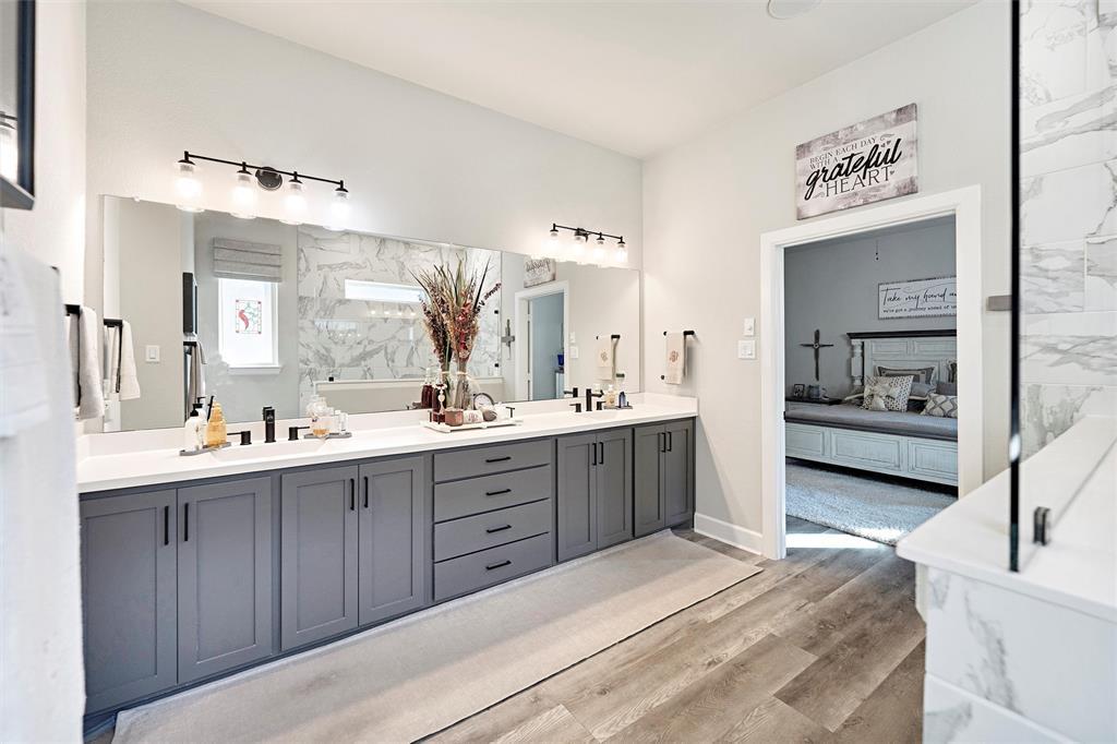 OPEN HOUSE THIS SATURDAY (2-21) FROM 12pm-3pm. Welcome to 4825 Beaver Creek Drive—an elegant, highly upgraded retreat in Arlington’s premier 55+ active adult community, Viridian Elements. Built in 2020 and offering just over 2,500 sqft, this 2-bedroom + office, 2 bath home is designed for comfort, style, and easy living. The open-concept layout is filled with natural light and features a designer kitchen with custom white and grey cabinetry, a large island, and a wet bar with wine fridge and sink—perfect for entertaining. A 12-ft custom sliding glass door leads to your expanded covered patio, larger than the standard builder option, complete with stained stone flooring in an elegant design. Enjoy low-maintenance turf, a built-in outdoor kitchen, a custom gas fire pit, and professionally landscaped flower beds with stone borders running along the entire backyard fence. The spacious primary suite overlooks this tranquil oasis and includes a spa-like bath with a super shower and beach-entry design. Additional highlights include a Sonos speaker system throughout, custom stonework on the front porch and columns, and a welcoming front sitting area. This home is loaded with thoughtful upgrades and sits in one of DFW’s most sought-after 55+ communities with trails, pools, pickleball, events, and more. Discover the lifestyle you’ve been waiting for at 4825 Beaver Creek Drive.