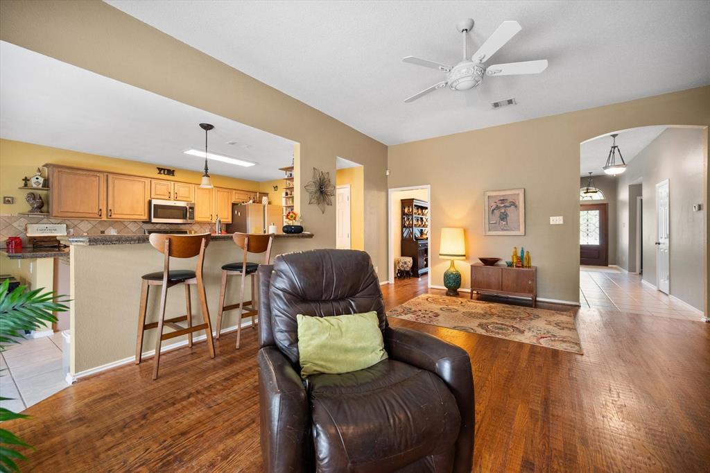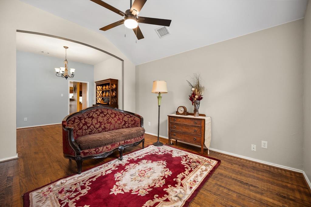 YOUR DREAM HOME AWAITS IN A SERENE CUL-DE-SAC! Step inside this charming single-story retreat, where comfort meets style. Boasting 2 inviting living areas, 2 dining spaces, and a versatile bonus room, there’s truly a place for everyone. Gorgeous hand-scraped wood floors flow through the formals and den, adding rustic warmth, while the kitchen shines with beveled granite countertops, abundant cabinetry, dual stone sinks, and a gas oven range — complete with a cozy breakfast nook for morning coffee or casual meals. Spacious bedrooms feature walk-in closets, and the updated primary bath impresses with a large walk-in shower. The separate bonus room provides privacy and flexibility, perfect for a home office, workout space, or game room. Step outside to an easy-to-maintain backyard, complete with a 10x12 electric shop and a separate garden shed — ideal for storage, hobbies, or projects. Located just minutes from schools and the charming Huntwick neighborhood, this home combines convenience with comfort. Don't miss out, schedule your showing for today! ***2.875 FHA Assumable Rate Available, ask agent for details***