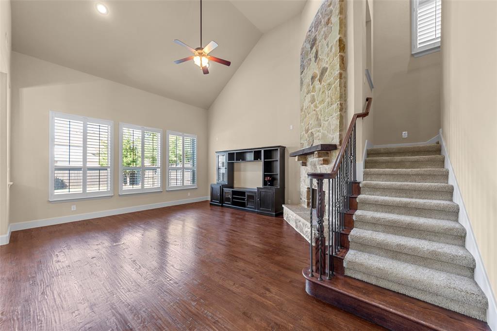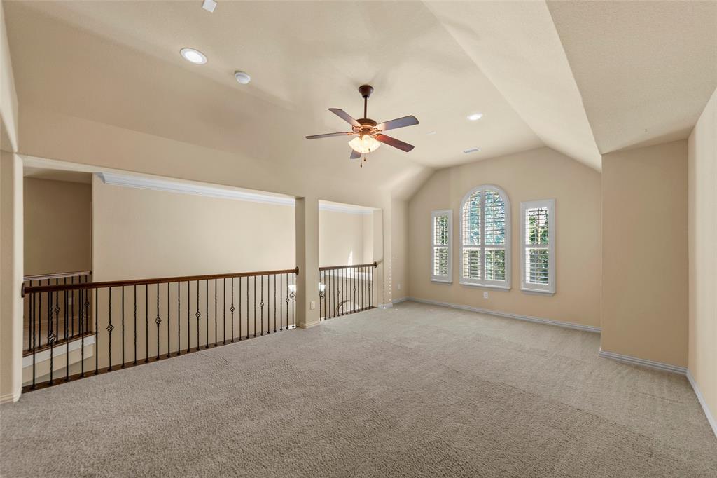 IMMACULATE MOVE-IN READY HOME LOCATED IN PRIME LOCATION OFF STACY AND 121 IN THE WATERFORD PARKS MASTER PLAN COMMUNITY ORIGINALLY BUILT BY KHOVNANIAN HOMES FEATURING STONE ELEVATION IN THE FRONT. BEAUTIFUL OVERSIZED BACKYARD WITH ELECTRIC GATE!! AS YOU ENTER, YOU ARE GREETED BY A GRAND TWO STORY FOYER. ON YOUR RIGHT IS A FORMAL LIVING AND FORMAL DINING ROOM. TO THE LEFT, A BEAUTIFUL STUDY. THE FAMILY ROOM SHOW CASES HIGH CEILINGS, OPEN SPACES AND CEILING HEIGHT STONE FIREPLACE. THE PRIMARY SUITE BOASTS A HUGE CLOSET, FRAMELESS SHOWER, FRAMED MIRRORS. THE LARGE KITCHEN IS IDEAL FOR LARGE GATHERINGS FEATURING A LARGE BREAKFAST AREA, GE PROFILE APPLIANCES, BOTH DISHWASHER AND COOKTOP ARE NEW. UPGRADED HARDWOOD FLOORING THROUGHOUT FIRST FLOOR. A WINDING STAIRCASE LEADS YOU TO AN OPEN GAME ROOM, MEDIA ROOM AND A LARGE BEDROOM WITH SEPARATE FULL BATH. THE 2 BEDROOMS EACH WITH A BATHROOM LOCATED ON THE OPPOSITE END OF THE CATWALK. THE BACKYARD FEATURES COVERED PATIO AND NICE OPEN SPACE. ADDITIONAL UPDATES PER OWNER INCLUDES THE FOLLOWING: HVAC INSTALLED IN 2025. NEW ROOF AND GUTTERS. BRAND NEW GAS WATER HEATERS IN 2025.