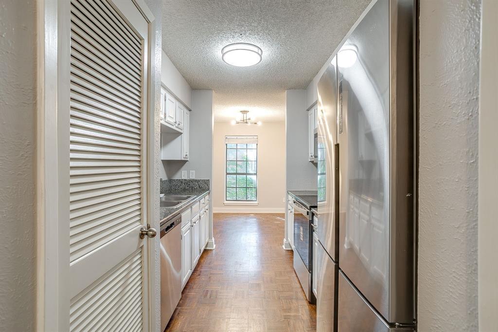 Spacious 2 bedrooms and 2 bathrooms ready for move in. This cozy but spacious condo has an open living concept and spacious closets, bathrooms and bedrooms. The patio balcony is private and serene with a nice view. The parking is a few steps away and covered for convenience. New paint in October 2025, dark hard wood floors, granite countertops, new refrigerator. Both bathrooms have been remodeled, tub in master, backsplash and commode replaced in 2023. Very convenient location, just a few miles from GM headquarters, UTA DFW airport, Arlington professional sports and Texas Live.