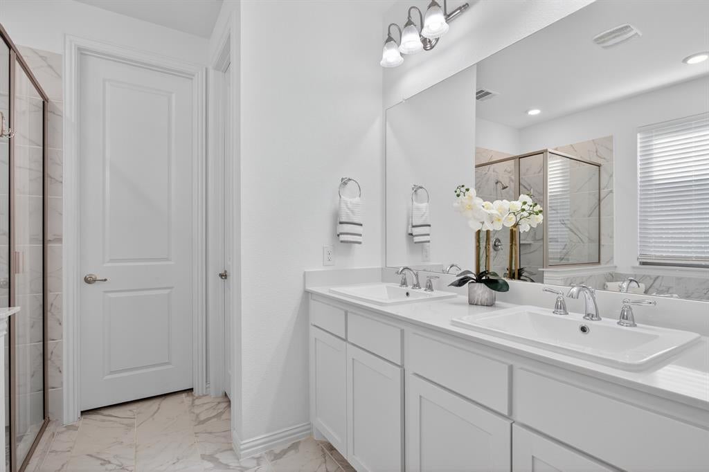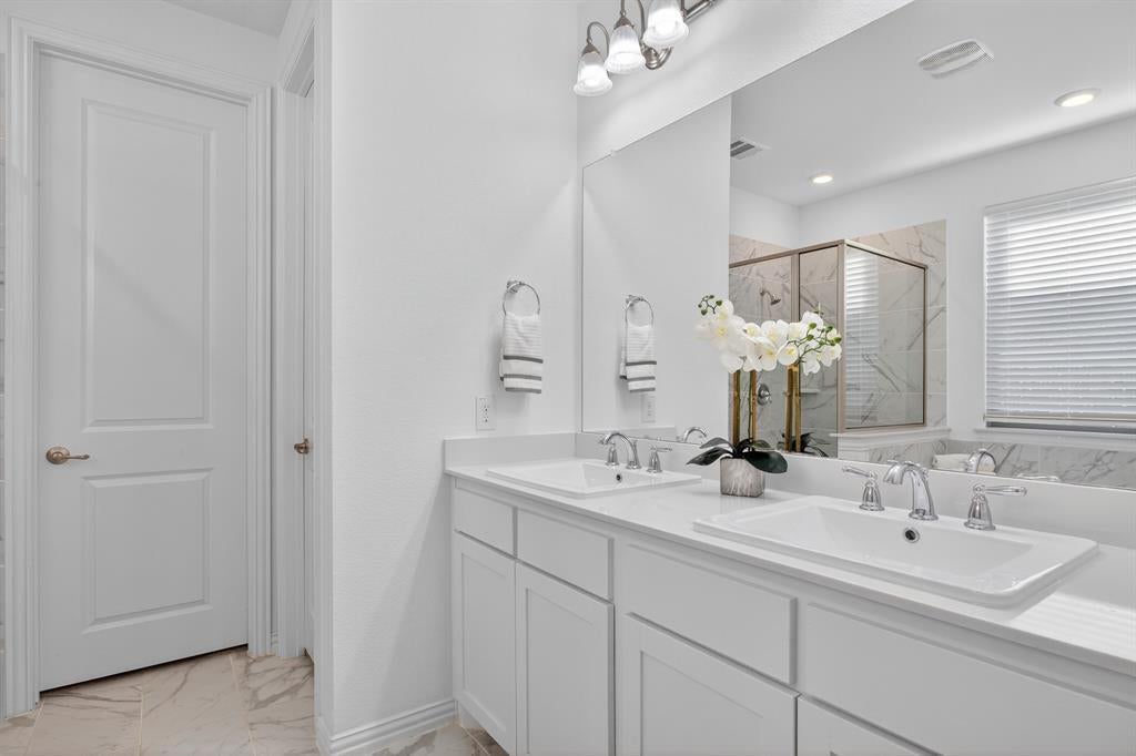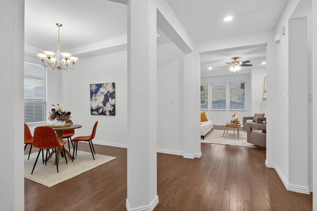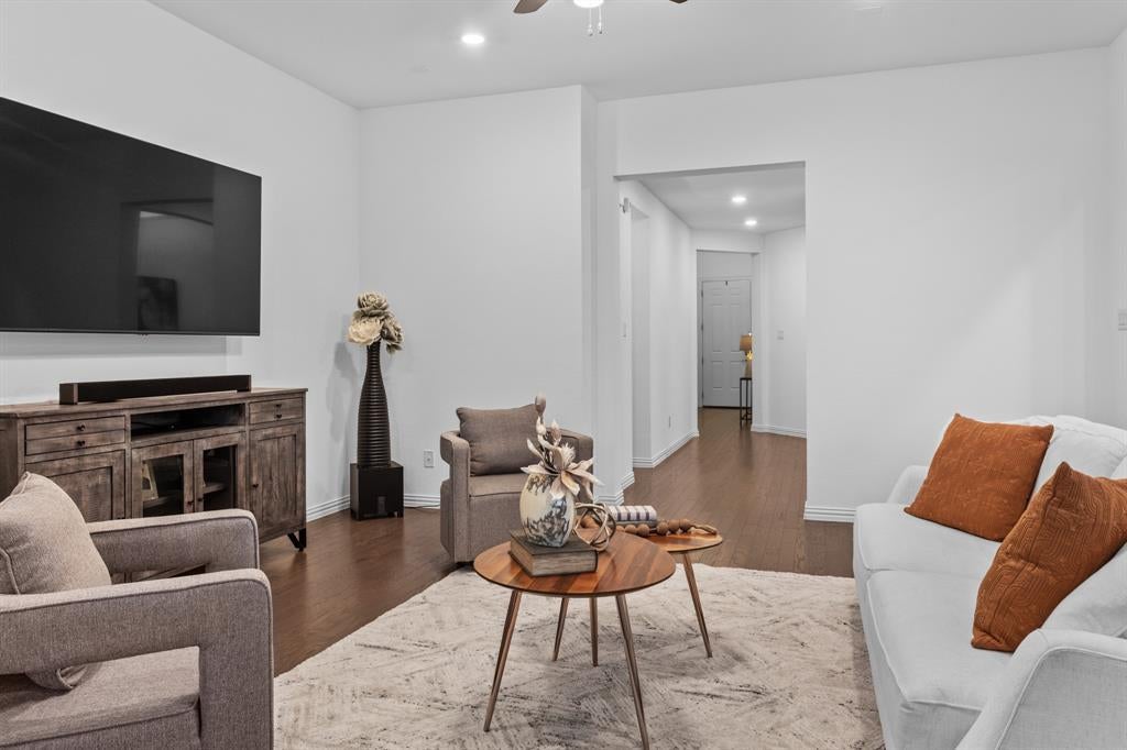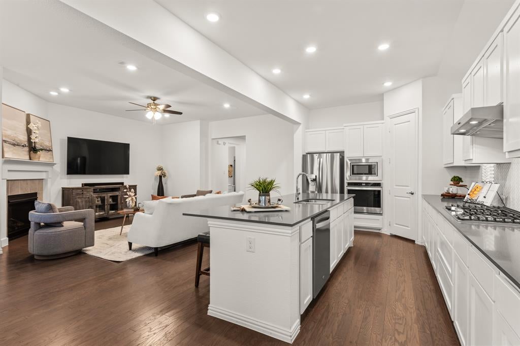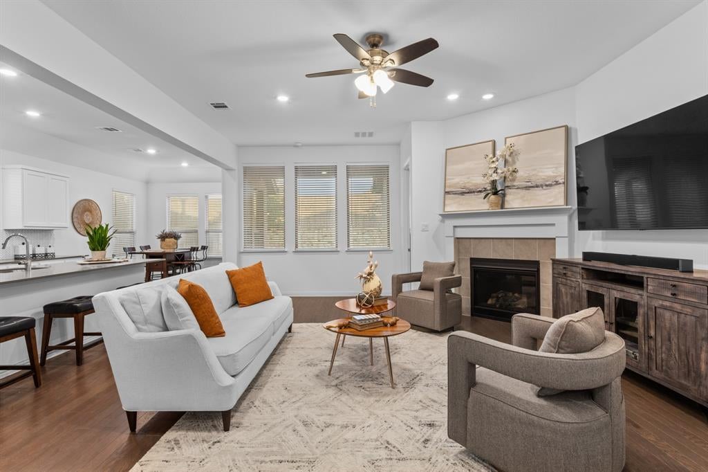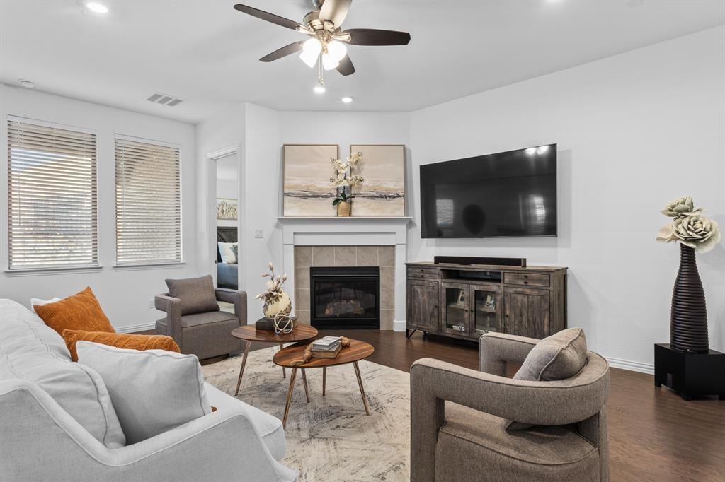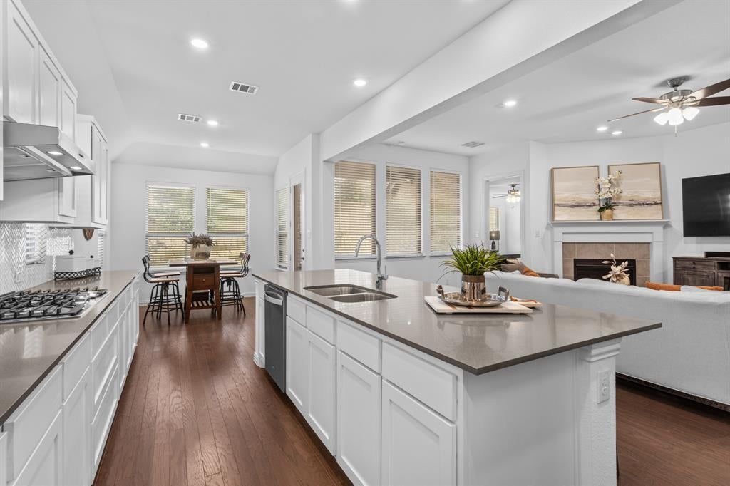 Discover your dream home in Canyon Falls, where timeless elegance & thoughtful updates meet everyday comfort in one of North Texas’s most prestigious master-planned communities. This beautifully curated Ashton Woods home, located within the acclaimed Argyle ISD, offers a seamless blend of upscale design, smart functionality, & warm, inviting spaces that elevate daily living. The stunning brick & stone exterior sets the stage for a refined interior filled with natural light & gorgeous wood floors. Designed for a lifestyle of versatility, the open-concept layout flows effortlessly from room to room, perfect for impressive entertaining with rooms flexible for multiple offices, dining or living spaces. Beautifully designed, the chef’s kitchen features an abundance of white cabinetry, walk in pantry, Whirlpool stainless appliances, quartz countertops, herringbone tile backsplash, an over-sized island with bar seating & a sun-lit breakfast room. The kitchen opens to a large, inviting main living with a gas fireplace, the centerpiece of the room, & a perfect backdrop for a cozy Sunday football or lively evening gatherings. A formal dining room with tray ceiling offers flexibility for entertaining, working from home, or creating a stylish playroom. The extended primary serene retreat has a spa-inspired bath with designer tile, soaking tub, double-sink vanity, & oversized walk-in closet. Secondary beds are generously sized with elevated finishes throughout. Enjoy peaceful evenings under the stars in your private backyard, complete with a covered patio, full sprinkler system, & a wood privacy fence, perfect for pets & play. Canyon Falls offers resort-style amenities including two pools, clubhouse, fitness center, dog park, fishing ponds & over 14 miles of trails. Enjoy community events like food truck nights, outdoor movies & seasonal markets. Minutes from I-35W, Hwy 114, DFW Airport, and top dining & retail—this home is the perfect blend of luxury, lifestyle, and location!