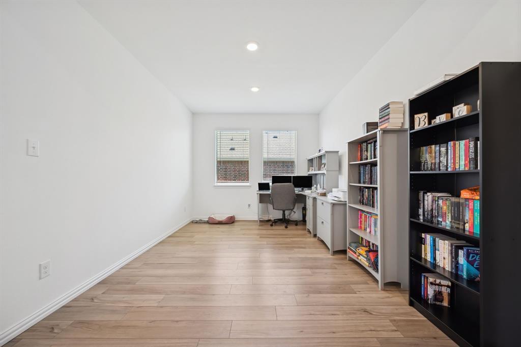 Welcome home to this beautifully maintained single-story 2021 Lennar home in Anna! Featuring 4 bedrooms, an office, and 2,010 square feet of thoughtfully designed living space, this home offers an open floor plan perfect for everyday living and entertaining. The main living area overlooks the spacious backyard and flows seamlessly into the kitchen with granite countertops, a large island, breakfast bar, walk-in pantry, and gas range. Luxury vinyl plank flooring adds a modern touch, and carpet in the secondary bedrooms. Carpet is being replaced in the primary bedroom and one of the secondary bedrooms for a fresh start. The primary suite includes a walk-in closet, dual sinks, and a walk-in shower. Enjoy outdoor living with a covered front porch and a large backyard with a covered patio—ideal for relaxing or hosting gatherings. Additional highlights include a new roof being installed in November 2025, brick exterior, and a front-entry 2-car garage. Conveniently located near schools, parks, and shopping, this home is move-in ready and waiting for you! **Seller is offering a $3500 incentive towards a rate buy down or closing cost with an acceptable offer**