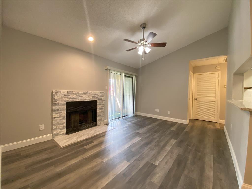 Awesome location in the Cloisters Condominiums of North Arlington. Updated second floor unit ensures no noisy neighbors above you. Kitchen has stainless steel appliances, quartz countertops, electric range, microwave and refrigerator. Extensive wood like flooring and NO CARPET! The updated kitchen is open to living with brick fireplace. Bedroom has two windows and walk-in closet. Bath offers dual sinks and updated tile tub-shower combo. The amenities in the Cloisters include tennis-pickleball courts, recreation center with table games, racquetball courts. Clubhouse, multiple pools, fitness room, sauna. Location is within walking distance to ATT Stadium, Choctaw stadium, Globe Life Park, Texas Live, with dining and shopping. No FHA or VA financing.*** Photos were taken August of 2023. Unit is currently tenant occupied.***