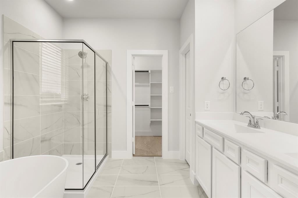 MLS# 21089060 - Built by First Texas Homes - Ready Now! ~ Discover this impressive 5-bedroom, 3.5-bath home offering 2,638 sq ft of thoughtfully designed living space. Enjoy a spacious primary suite with dual vanities, a gourmet kitchen perfect for entertaining, and a versatile upstairs game room. The covered patio extends your living area outdoors, while extensive trim work, custom architectural details, and upgraded flooring in all wet areas add a touch of luxury. A two-car garage completes this exceptional home. Schedule your tour today and make this dream home yours. Harrison F - E , Solterra , Mesquite, TX