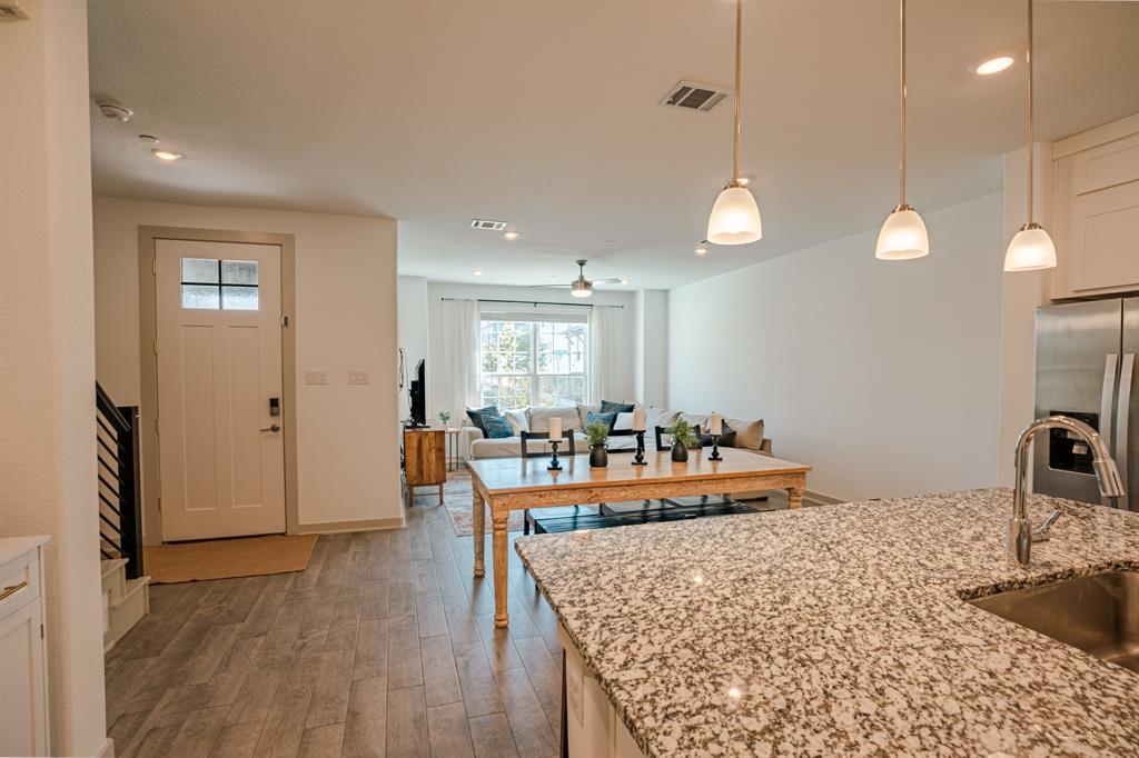 Modern, Spacious Townhome in Prime Allen Location! Welcome to this stunning, contemporary townhouse tucked away in a quiet, tree-lined setting in sought after Allen. This upgraded, newer home offers an abundance of space and style, featuring three generously sized bedrooms, each with massive walk-in closets. The heart of the home is the spacious kitchen, seamlessly connected to a huge dining area and a bright, airy living room through an open-concept floor plan—ideal for entertaining or relaxed everyday living. The luxurious primary suite includes a private sitting deck and a beautifully appointed ensuite bathroom, perfect for relaxing after a long day. Upstairs, you'll find a large flex space—ideal for a home office or children’s play area. Enjoy the unbeatable location, just steps from the 800-acre Oak Point Park and Nature Preserve, and close to shopping, dining, and entertainment options. Privacy, space, and convenience—this townhome has it all!