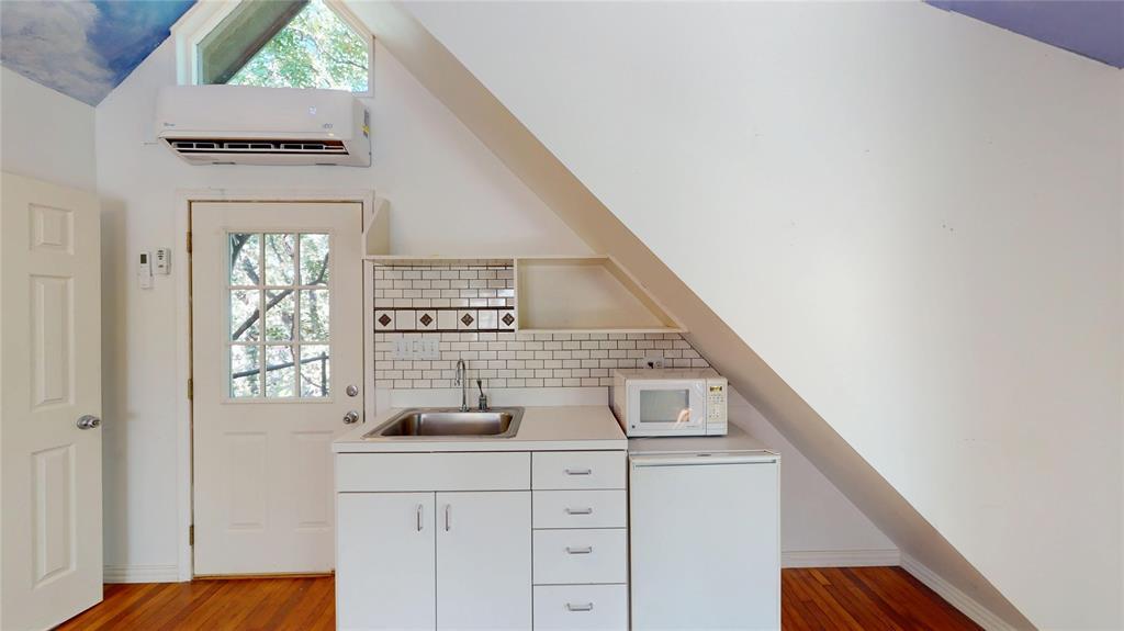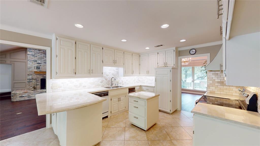 The property includes a separate garage studio apartment. Located on a heavily wooded and landscaped site. Home is Chicago brick with a Class 4 shingle roof and a circular drive in front. The main house is a 4 bedroom, 2.5 bath with a living room, sun room, kitchen, breakfast area, dining room, and entry gallery. Recent updates include new paint, granite counter tops, HVAC, water heater, insulated windows, plumbing fixtures, light fixtures and new locks, hinges and hardware. New wood flooring throughout the house with the kitchen, breakfast, sunroom and baths finished in travertine porcelain tile. The master bath has a shower and a jacuzzi whirlpool bath tub and his and hers lavatories and closets. The attached 2 car garage has wall cabinets added, HVAC and space for an extra refrigerator. Exterior has new gutters and down spouts, with a stamped concrete rear patio of around 2000 sf. which connects the main house to the apartment. The lawn is irrigated. The house is bright inside and faces south. The neighborhood is very quiet with no train or plane noise and very few cars use the street. Behind the house is a 2 story building with a studio apartment over a 2 car garage. The apartment has a large bedroom and living area with a full bath, kitchenette with refrigerator, microwave and a new mini split HVAC system. Perfect for rental if so desired. The secondary garage has a work bench, sink, laminate wall cabinets and AC. The back yard has a 8’ high cedar fence and a small tool shed behind the apartment. The house is 2892 sf plus the garage.The apartment adds another 552 sf up and down. The location is minutes away from Lake Arlington, the new Senior Center, great schools, and easy access to I20, I30, Green Oaks Blvd and Hwy 287. Only a mile to banks, restaurants, grocery stores, etc.