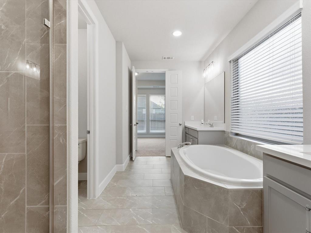 Built-in Cabinets, Dual Sinks, Ensuite Bath, Garden Tub, Linen Closet, Medicine Cabinet, Natural Stone/Granite Type, Separate Shower, Separate Vanities