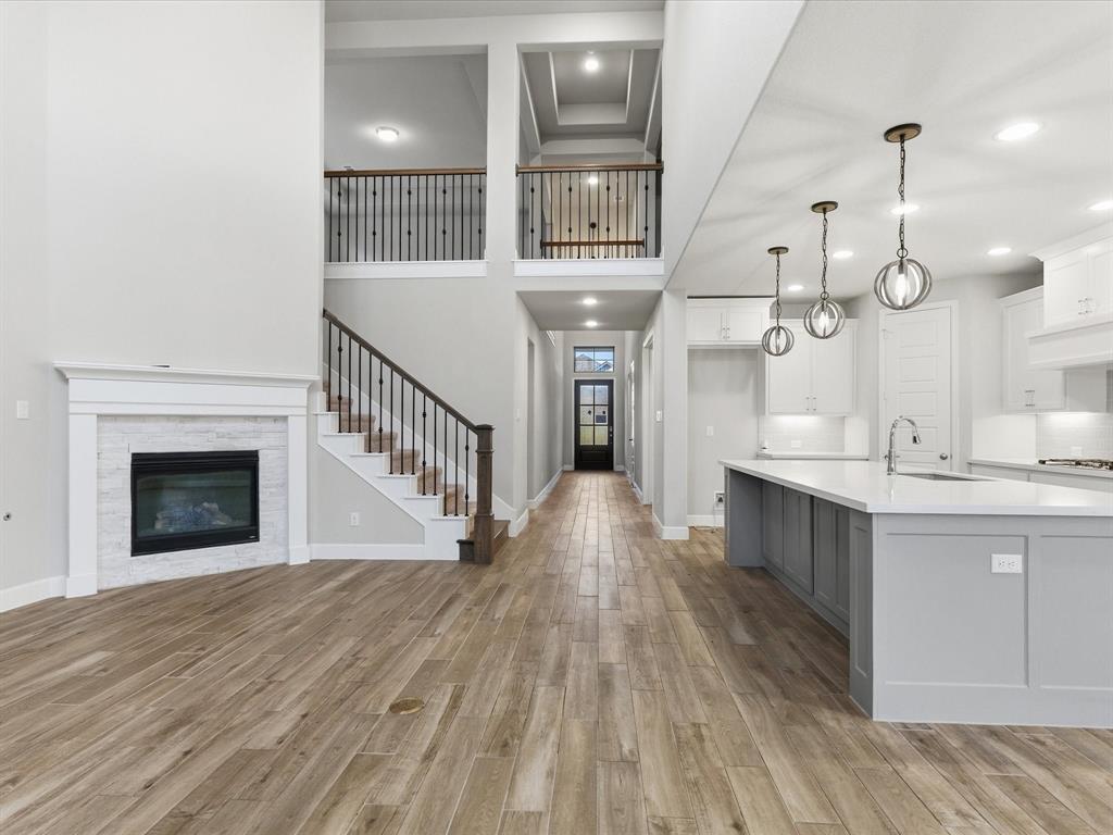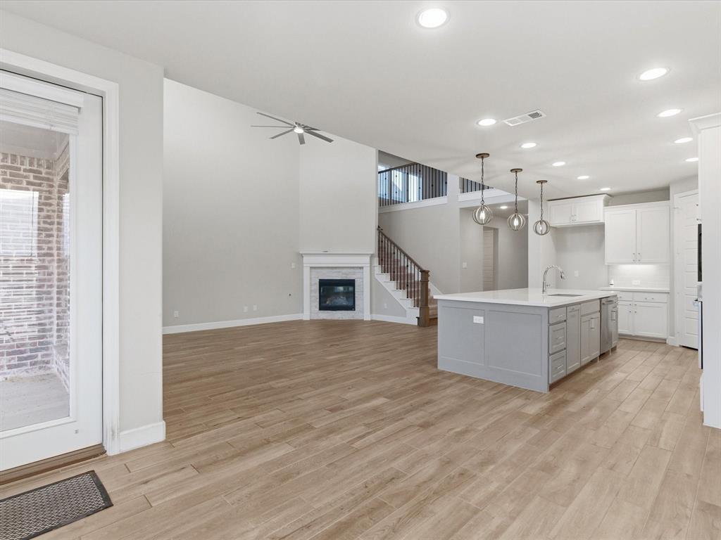 Beautiful 4-bedroom, 3.5-bath home in the growing City of Celina! This home features an open floor plan with a spacious kitchen, large island with storage on both sides, and stainless steel appliances. The private office showcases elegant French doors and ceramic flooring. A vaulted family room with a wall of windows fills the space with natural light, and a cozy gas log fireplace adds warmth in the evenings. The first-floor primary suite offers dual vanities, a soaking tub, and a generous walk-in closet. Upstairs includes a large game room, two bedrooms, and a full bath—perfect for entertaining or guests. With decorative lighting, natural stone countertops, and a three-car tandem garage, this home blends comfort and style in every detail.