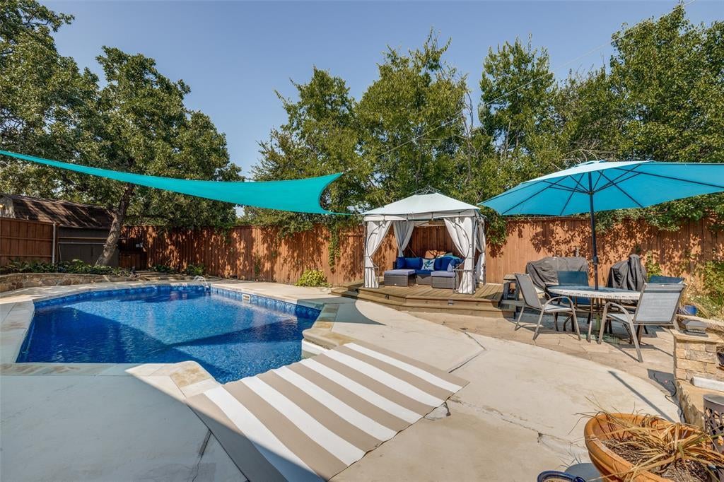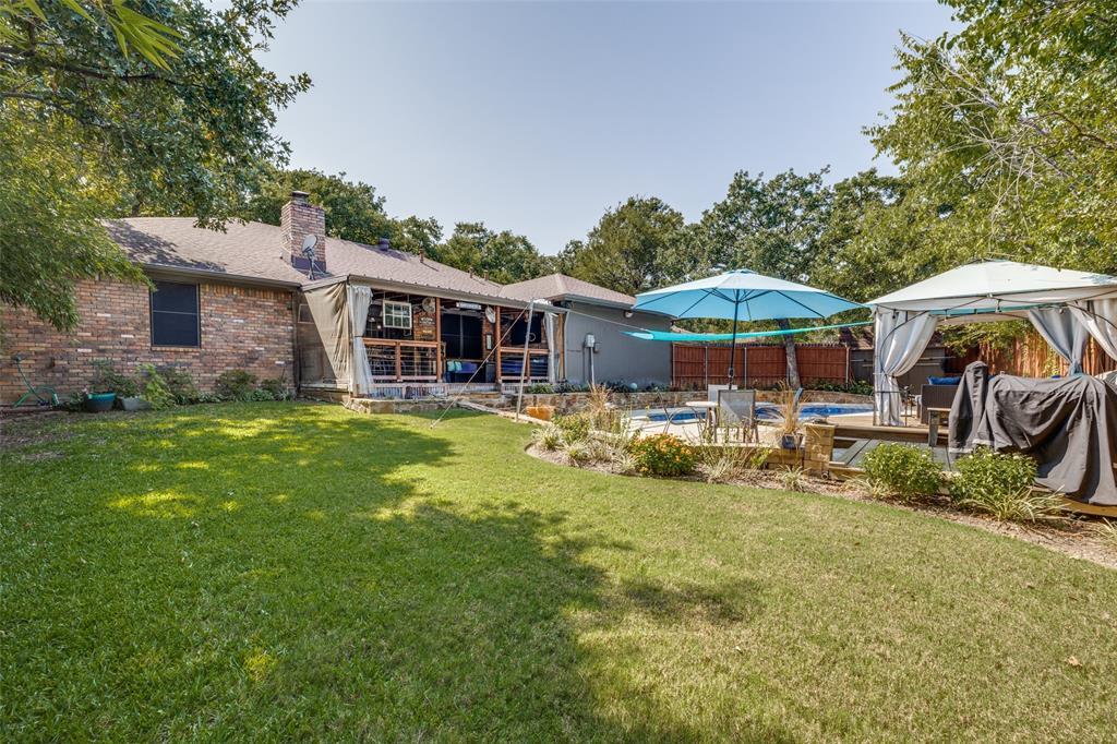 Charming home with lots of character and modern upgrades that is located on a beautiful lot with plenty of mature trees and shade. The large back yard features a sparkling pool and a covered deck along with an additional deck with a covered cabana, both ideal for entertaining. A large storage shed is perfect for all your outdoor tools. Inside you will find many upgrades in all rooms with wood floors, adding warmth and elegance. This home combines timeless charm, creating the perfect new home for buyers plus offers a peaceful retreat while being perfect for entertaining in the heart of the metroplex.