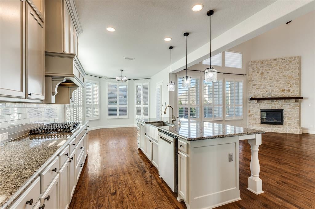 Desirable corner lot, exquisite 5-bed, 7-bath home showcases timeless luxury with hand-scraped hardwood floors, plantation shutters, and beautifully updated kitchen and owner’s suite. The gourmet kitchen is thoughtfully designed for both entertaining and everyday living, featuring soft-close cabinetry, stainless steel appliances, oversized 5-burner gas cooktop, double ovens, farmhouse sink, expansive California-style island, butler’s pantry, oversized walk-in pantry, coffee bar, and elegant under- and over-cabinet lighting. Designer lighting enhances the family room, kitchen, breakfast area, and foyer. The private owner’s retreat offers a spa-inspired bath complete with a walk-in shower featuring dual shower heads, seating and built-in shelving. Suite includes split vanities and a custom walk-in closet. A second bedroom with ensuite bath and walk-in closet is conveniently located on the main floor—ideal for guests or multigenerational living. The oversized office French doors provides a quiet and sophisticated work-from-home space. Upstairs, additional bedrooms are complemented by an expansive game room and media room, creating the perfect environment for entertainment and relaxation. Additional luxury upgrades include a smart home system with Ecobee thermostat, two tankless water heaters, remote-controlled blinds, custom lighting, surround sound wiring. Outdoor living is equally impressive with a therapeutic spa, extended covered patio, gazebo, and professionally upgraded landscaping with full irrigation—creating a private retreat ideal for year-round enjoyment. Residents of ML enjoy resort-style amenities including a clubhouse, pools, fitness center, tennis courts, scenic ponds, parks, miles of walking trails, and a lifestyle director. Ideally located within walking, biking, or golf-cart distance to JES and zoned for WGHS, with convenient access to the NDT and DFW-area airports. Experience the charm of Celina—one of the fastest-growing cities in the nation.