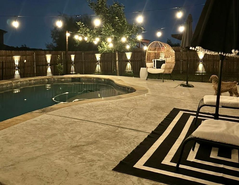 Welcome to 335 Coral Vine Ln located in the desirable Mistletoe Hill community with neighborhood amenities that include a pool, park, and playground. This beautiful single-story home features 3 bedrooms and 2 bathrooms with great curb appeal, attractive landscaping, and a long driveway for extra parking. Inside, the entryway hallway features an accent brick-style archway that opens into an inviting open floor plan filled with natural light. The living area includes an electric fireplace added in 2023, creating a warm and welcoming focal point. The spacious kitchen offers a large island with seating, plenty of counter space, and a dining area that overlooks the backyard. The primary suite includes a private bathroom with a garden tub, separate shower, and double vanities. Outside, the backyard is absolutely stunning with an extended patio that opens to a beautiful shimmering inground pool with lights, perfect for relaxing or entertaining. The fully fenced yard provides privacy and plenty of space to enjoy outdoor living. Additional updates include a new roof in 2024 and an inground pool installed in 2022. This home combines comfort, style, and thoughtful upgrades in a wonderful community setting.