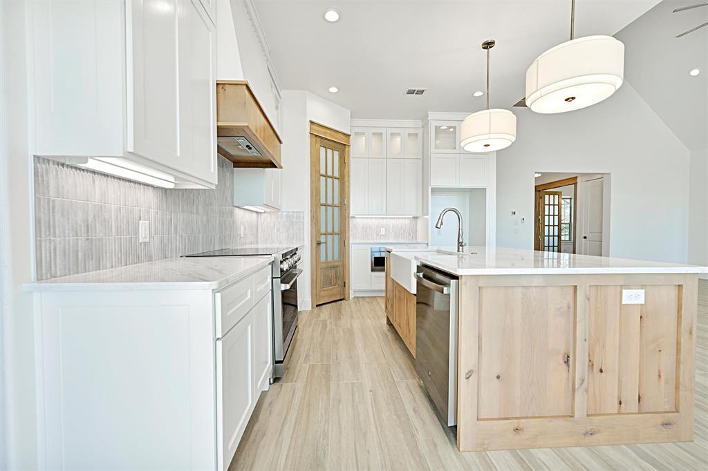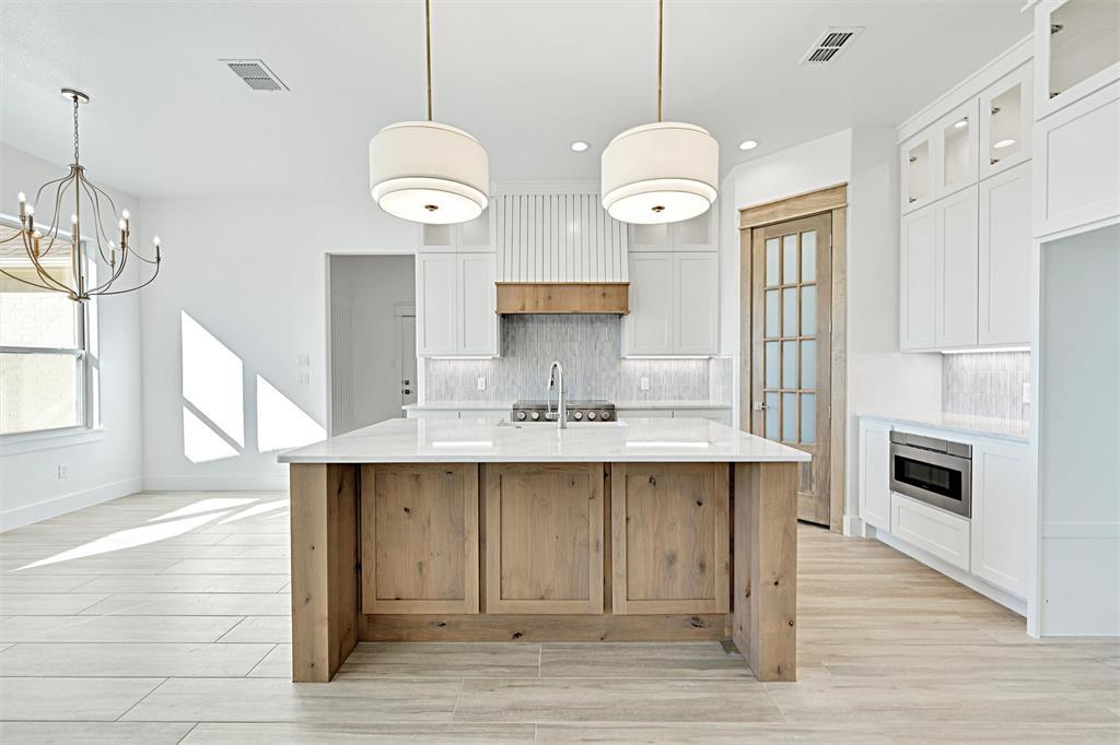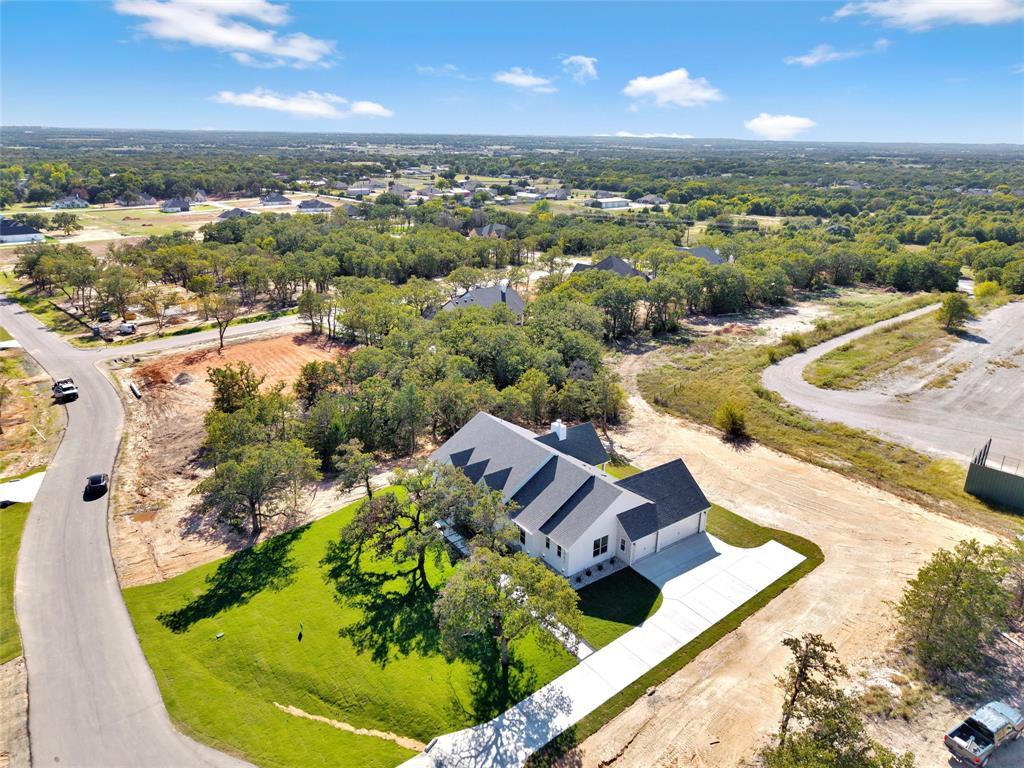 Welcome to this beautiful 4-bedroom, 2.5-bathroom home located in a cul-de-sac in the brand new Arbor Vista Community in Azle, Texas. Set on a full acre with no HOA, this breathtaking home offers 2,484 square feet of thoughtfully designed space, plus a 3-car garage, and an oversized back porch complete with a vaulted ceiling to peacefully wind down after a long day or for the dream space to entertain. From the moment you arrive, the home makes an unforgettable first impression— a magnificent stone exterior, oversized driveway, 8ft privacy fence along the back property line for privacy, and a beautifully manicured front yard set back amongst the trees. When you step through the front door, you will notice how open and elevated the home feels with it's bright windows, wood-beam vaulted ceiling, wood-burning fireplace, quartz countertops, custom cabinetry, porcelain tile, luxury carpet, high-end light fixtures, and detailed woodwork. The dedicated office space with a coffered ceiling, overlooking the idyllic front yard full of trees is perfect for remote work or as a personal retreat. The primary bedroom is it's own personal oasis, with a beautiful coffered ceiling, private exterior door to your back porch oasis, a spa-like primary bath including a freestanding tub, an elegant separate shower, and a generous walk-in closet. The utility room is spacious enough for an extra fridge or freezer, includes custom cabinetry, and a sink with quartz countertop for all of your laundry needs. Some additional notable features include a spray-foam insulated garage, engineered foundation, and a full landscaping and irrigation package. You are truly not going to want to miss out on this home.