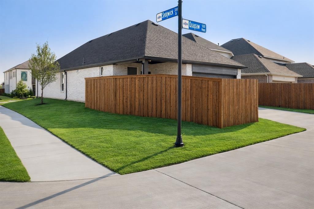 MLS# 21097249 - Built by UnionMain Homes - Ready Now! ~ This stunning single-family residence, completed in 2025, offers modern living in the desirable Edgewater subdivision within the Rockwall ISD. Spanning 1,754 square feet, the home features three spacious bedrooms, including a luxurious primary suite, and two full bathrooms. The traditional design showcases an open floorplan with an eat-in kitchen, kitchen island, and pantry, perfect for entertaining. Enjoy modern conveniences with a smart home system, high-speed internet, and decorative lighting. The home is equipped with ENERGY STAR heating, central air, and a slab foundation. Exterior highlights include a covered patio and a well-maintained yard with a sprinkler system. With two garage spaces and located near top-rated schools, this property combines functionality and style for a perfect family home.