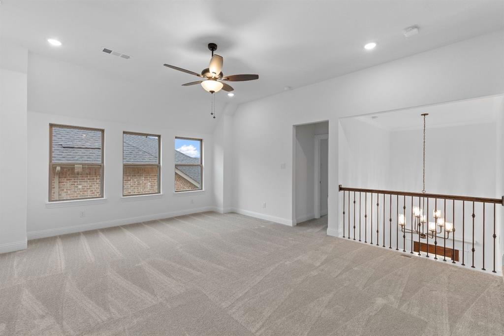 MLS# 21097567 - Built by Coventry Homes - Const. Completed Oct 27 2025 ~ This beautifully designed home blends modern luxury with everyday comfort! Nestled in the sought after Hillside Village community in Celina, this spacious 4 bed 4.5 bath home offers everything you need for stylish functional living. Step inside to be greeted by soaring high ceilings and an open concept layout, perfect for entertaining or creating cherishing moments. With a gorgeous gourmet kitchen that flows seamlessly into the living and dining areas, creating a warm inviting space. The home also features a study for those who work from home and a media room that makes movie nights come to life! Hillside Village is a beautiful peaceful community with convenient access to shopping, dining, and top-rated schools! Don't miss the opportunity to make this home yours!!
