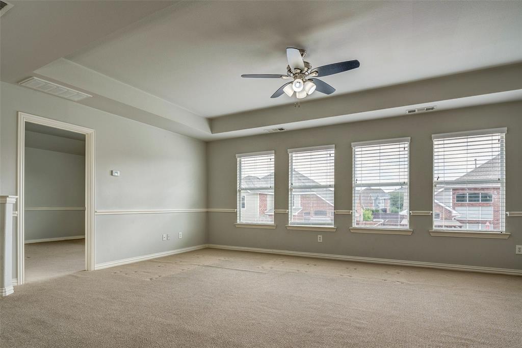 Stunning 4-Bedroom Home Steps from Celebration Park!This elegant 4-bedroom, 3.5-bath home sits on an oversized lot just steps away from Allen’s premier 100-acre Celebration Park—enjoy watching the holiday fireworks right from your backyard!Inside, you’ll find hardwood floors, soaring ceilings, and abundant natural light streaming through high windows that brighten the open living areas. The inviting living room features a striking gas fireplace and flows seamlessly into the kitchen and breakfast nook.A private home office at the front of the house provides the perfect work-from-home setup. The spacious dining area—surrounded by windows with views of the backyard—creates an ideal space for gatherings.The chef’s kitchen boasts granite countertops, a gas cooktop, 42” cabinets, stainless steel appliances, and generous storage throughout.The first-floor primary suite offers backyard views and a spa-like bath with dual sinks, granite countertops, a large soaking tub, frameless glass shower, and a huge walk-in closet.Upstairs, you’ll find three large secondary bedrooms—each with privacy—along with an oversized game room that opens to the living area below. Additional features include newer high-traffic carpet, wrought iron staircase spindles, and two full bathrooms with granite countertops.