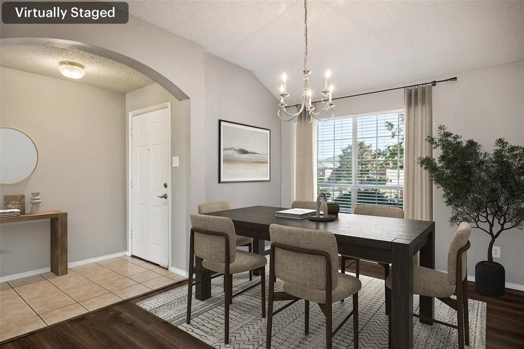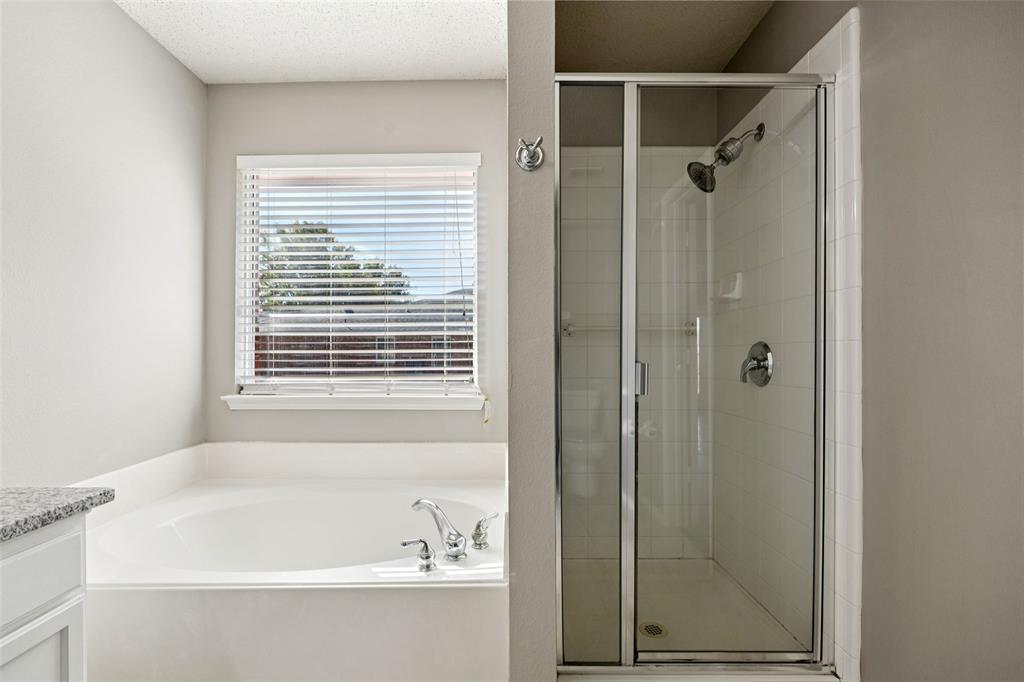 Meticulously maintained and move-in ready, this beautiful one-story home has been stylishly updated with on-trend finishes throughout. You’re welcomed by great curb appeal featuring a charming brick façade and mature shade tree. Inside, the bright open floorplan is accentuated by abundant natural light, high ceilings, and a soft neutral color palette that creates a fresh, airy feel. The formal dining room flows seamlessly into the spacious living area, highlighted by an inviting brick corner fireplace and ceiling fan. The completely renovated kitchen is a chef’s dream—featuring quartz countertops, crisp white cabinetry, a chic subway tile backsplash, deep undermount sink, new range hood, updated lighting, and modern faucet. Additional updates include a new AC unit (2023), fresh interior paint (2023), and a new water heater (2025). The serene primary suite is privately tucked away and offers a spa-like ensuite with dual sinks, a garden tub, walk-in shower, and large walk-in closet. Two additional bedrooms share a beautifully updated full bath with quartz countertops. Enjoy the outdoors year-round from the covered patio overlooking a Texas-sized fenced backyard. The side-entry 2-car garage provides extra convenience, storage, and security. Schedule your showing today—this gem won’t last! Mortgage savings may be available for buyers of this listing.