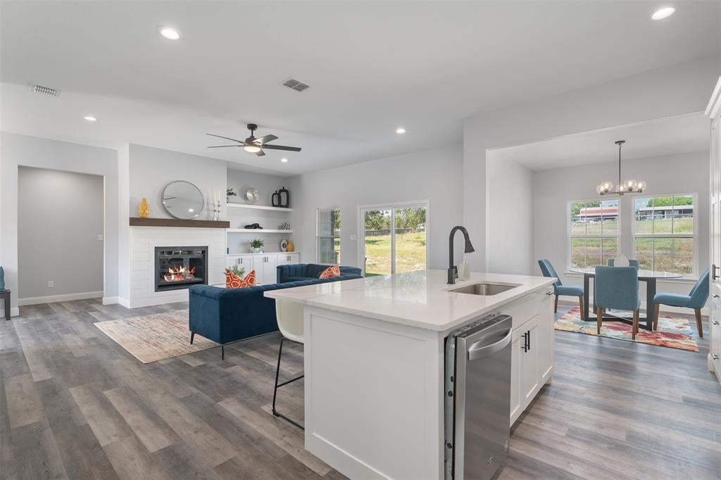 This beautiful 4-bedroom, 2 and a half bath home is move-in ready and packed with features! Enjoy a spacious open floor plan, gas log fireplace, and gorgeous finishes throughout. The luxury vinyl plank flooring adds both style and durability, perfect for busy households.