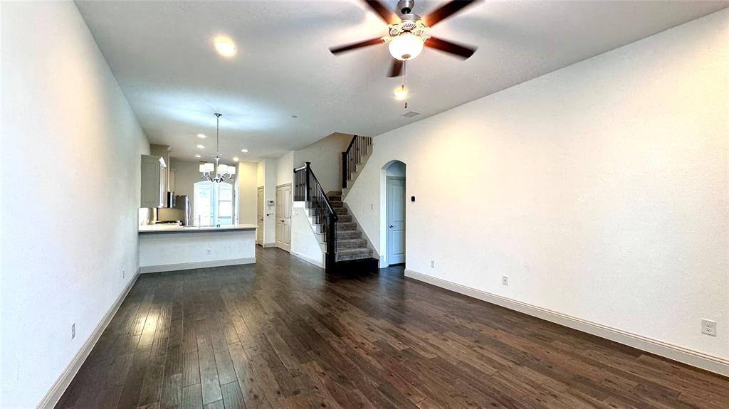 The open-concept floor plan features a spacious master bedroom on the first floor, seamlessly connecting to an elegant living room—perfect for entertaining or enjoying quiet evenings at home. Beautifully updated with luxury wood flooring throughout the common areas, this home exudes modern sophistication.