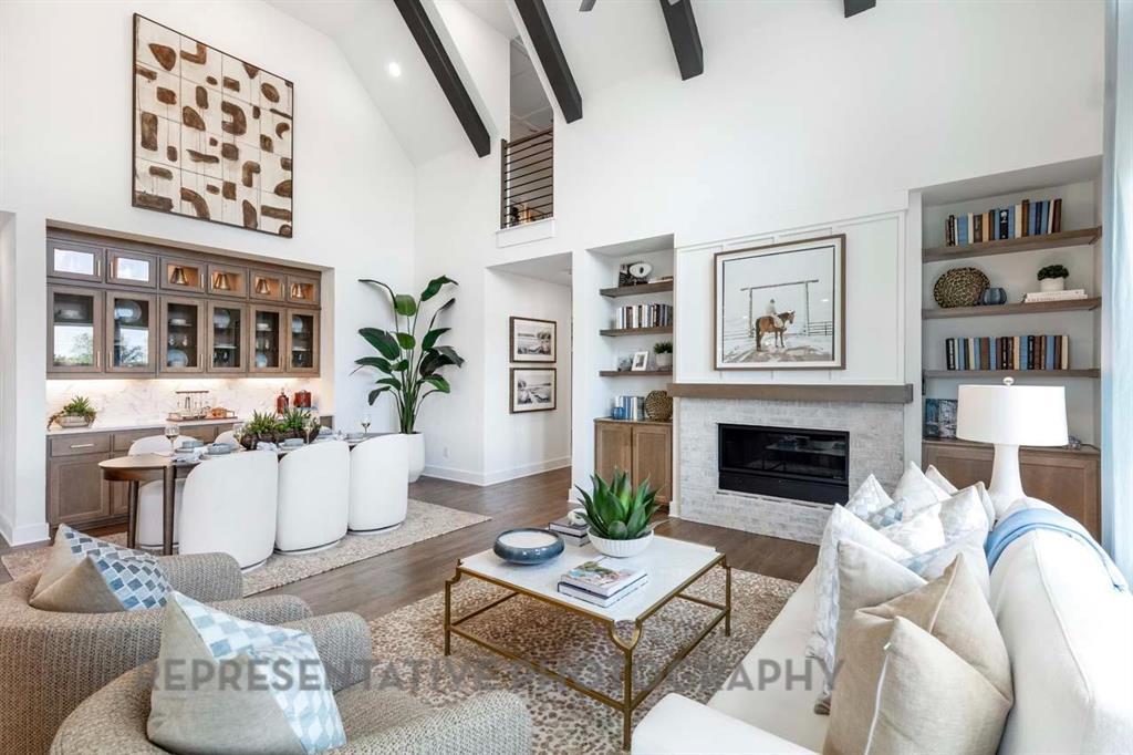This exquisite home offers over 2,800 sq. ft. of thoughtfully designed space. Striking modern exterior welcomes you with light brick,black roof,covered front porch,and a cedar garage door. Inside,the open dining and family rooms boast vaulted ceilings,a gas fireplace and covered patio which accommodates private relaxation or large gatherings. The heart of the home impresses with a chef-inspired kitchen. Retreat to the secluded primary suite,offering a spa-like bath with a soaking tub,separate shower,dual sinks,and a walk-in closet. Enjoy entertaining with additional living space loft and entertainment room.