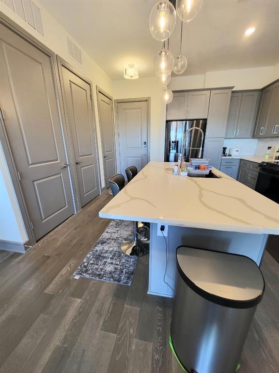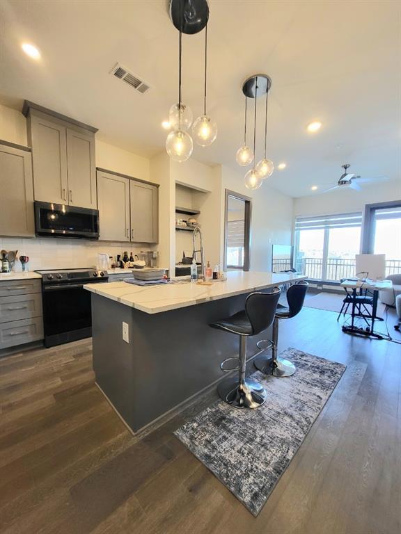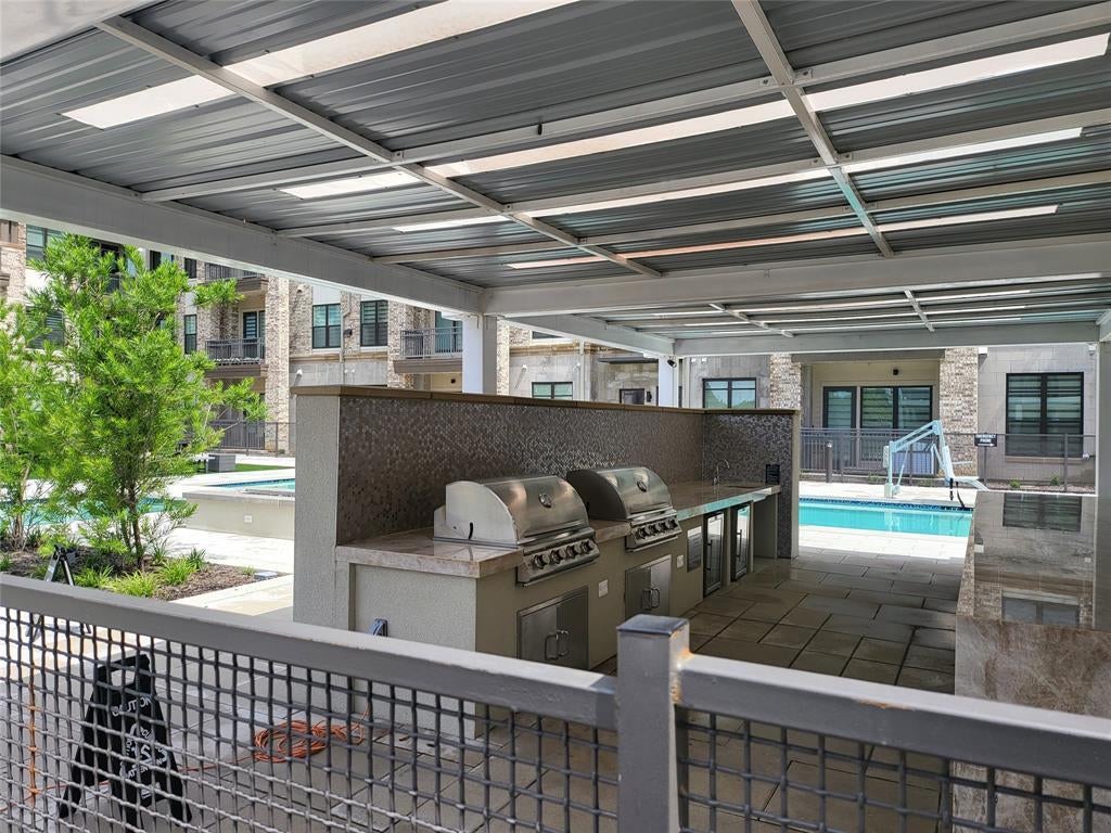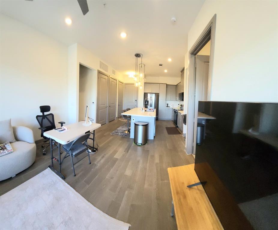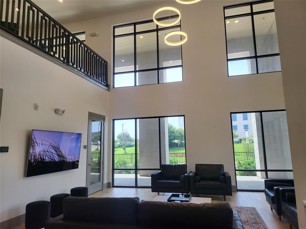 2bed room and 2 bath room condo is located on 3rd floor and a beautiful creek view side with walking trail. This condominium was completed their construction in 2023. It has 5 elevators up to 4th floor. It is modern and clean. This 4 story building has mail box room, secure entry, big conference room Gym and game room, kitchen and bar, access to pool and bike storage, jogging trails. It is easy to access from I-35 and George Bush highway and 121..