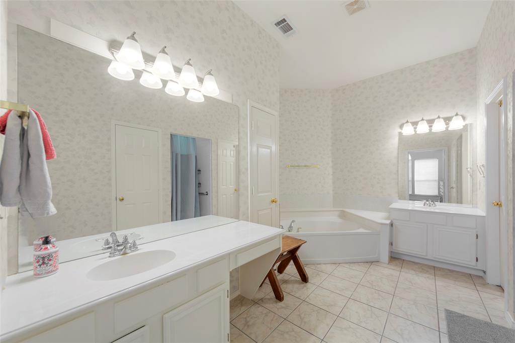 WE HAVE MULTIPLE OFFERS. PLEASE SUBMIT YOUR HIGHEST AND BEST BY 2:30PM TUESDAY JANUARY 13. Welcome to this beautifully designed 4-bedroom, 2.5-bathroom one owner home, where natural light flows freely throughout every room. Step inside and feel instantly at home in this Plano ISD Timber Brook Estates property with luxury vinyl plank flooring that spans the entire living space, creating a sleek, low-maintenance environment. This property combines both style and functionality, with thoughtfully designed areas for work, relaxation, and entertainment. The heart of the home features a bright, open-concept living area, with large windows that let in an abundance of natural light. A cozy gas fireplace takes center stage, anchored by built-in shelves that stretch across the entire opposite wall, offering both decorative flair and practical storage. The living area seamlessly transitions into an eat-in kitchen, complete with granite countertops, stainless steel appliances, and an oversized central island with a breakfast bar. The dedicated dining room provides the perfect space for hosting family gatherings or intimate dinners, while a separate home office offers the privacy and tranquility needed for remote work or study. Retreat to the private primary suite, which is thoughtfully tucked away for added privacy. It includes a spacious bedroom, dual vanities, a soaking tub, and a separate shower, providing a serene space to unwind at the end of the day. Convenience is key, with a two-car garage and a low HOA that keeps the community beautifully maintained. The HVAC and water heater are both less than two years old, and the roof is approximately 7 years old, ensuring you can move in with peace of mind. While Timber Brook Estates offers walking trails and green spaces, you're just moments from Oak Point Park & Nature Preserve. There you’ll have access to miles of trails for walking, running, and biking and a large fishing pond.