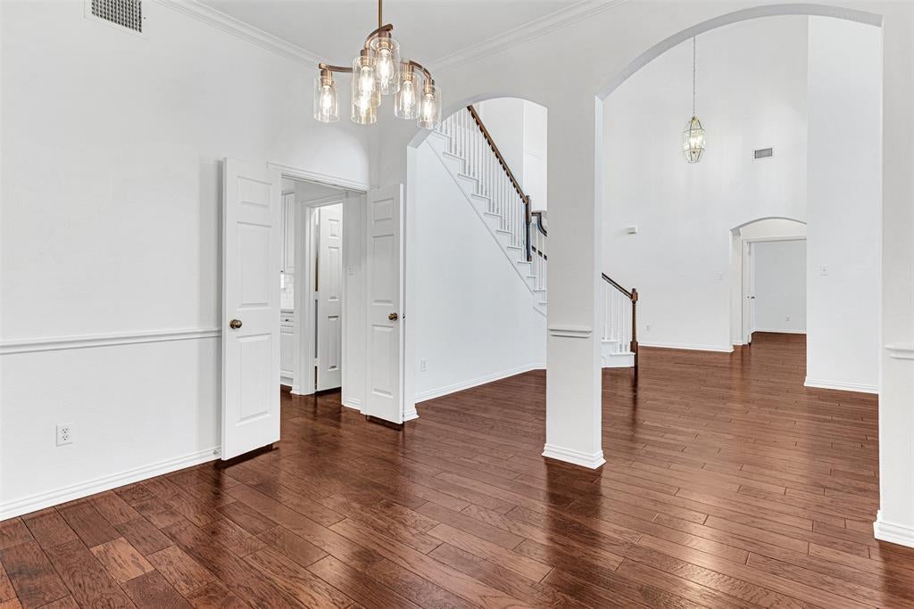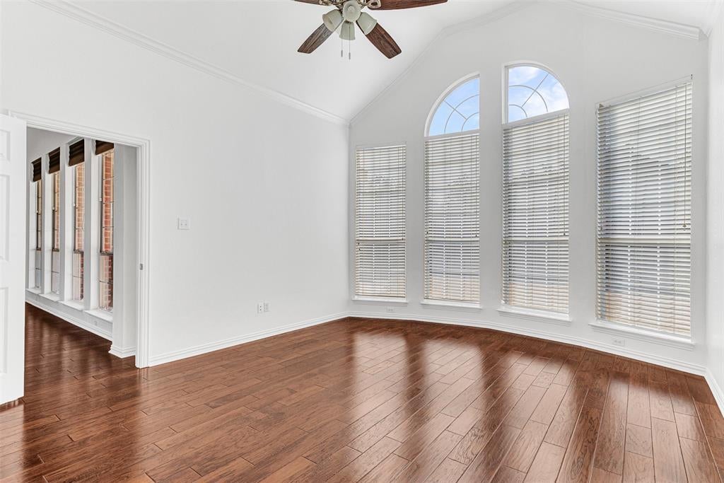 **OPEN HOUSE SATURDAY FEB. 7TH, FROM 1-4PM** Stunningly updated corner lot home in perfect Plano location! Gorgeous inside and out. Light and bright interior shines with LVP floors throughout, fresh paint, flowing floorplan and plantation shutters, just to start! Two story foyer brings you to your first look at the elegant staircase, formal living and dining rooms and an expansive family room with gas log fireplace and wall of sunny windows showcasing the covered patio and backyard. A few steps more and you're in the gourmet kitchen of your dreams! White quartz counters, white cabinets, Frigidaire electric cooktop, built-in oven and microwave, walk-in pantry - almost too good to be true! The cozy breakfast nook features more built-in cabinets and planning desk. The huge primary suite is down for privacy, with another wall of windows to the backyard. Its spa-like bath features impressive walk-in shower, jetted tub, dual vanities, line closet and sublime walk-in closet. There's also a second bedroom (or magnificent home office) next to a gloriously updated full bath! Up the stairs is a raised game room plus three more bedrooms and an updated full bath. The backyard is extra large, plenty of space for a pool with room left over for gardens and play areas for kids and pets. The Preston Ridge Trail stretching 6 miles, ideal for walking, running and cycling, is at the end of the street! Major highways: 121, 75, DNT - are minutes away with easy access to Legacy West, Stonebriar Mall, Roughriders Stadium and the Star Center.