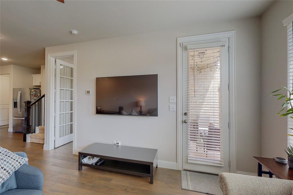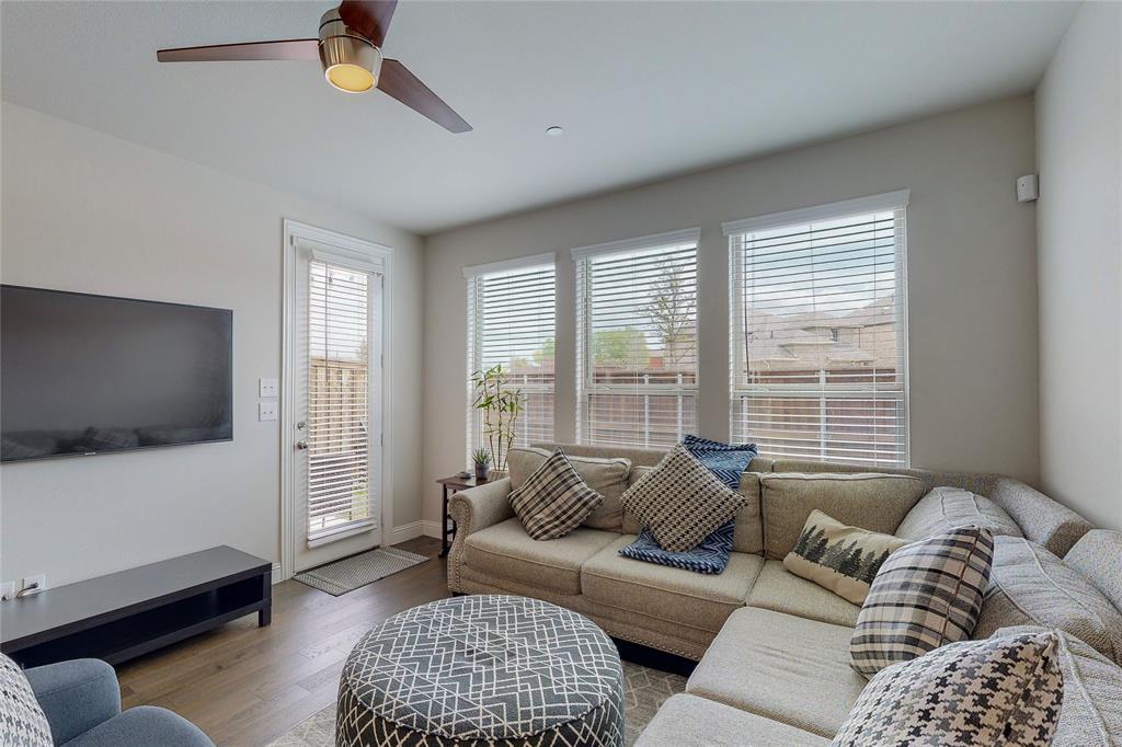 Three bedroom and flex room downstairs that be a study room. This is a contemporary METICULOUSLY MAINTAINED luxury townhome located minutes away from 121 and DNT. Convenience just under 10 minutes to Headquarters, High end shopping at prestigious Shops at Legacy, Legacy West. The townhome has an open floor plan with 9ft ceiling in the living room with plenty of healthy sunlight and contemporary and updated wood flooring in the kitchen and living room. It has a modern kitchen with full granite countertops, modern kitchen cabinets with auto close update. Stainless steel appliances and is energy efficient. refrigerator, washer, dryer convey with property. A large master bedroom with a walk-in closet and a full bath, double vanities and shower enclosure. Covered patio with a fully fenced backyard for privacy. Across the street from the townhome is a nearby large open green area for kids to play and dog walk. The townhome has Energy star features. Desired Frisco schools. Whole house water softener and kitchen water filter. Storage room. Long trail for walking. HOA fees include front yard maintenance, water used in yards, roof. Roof is 2 years old. security system at the house conveys, water softener system and RO sytem in kitchen convey.
