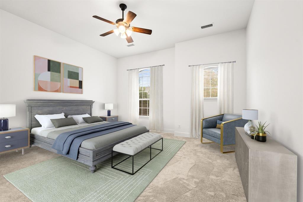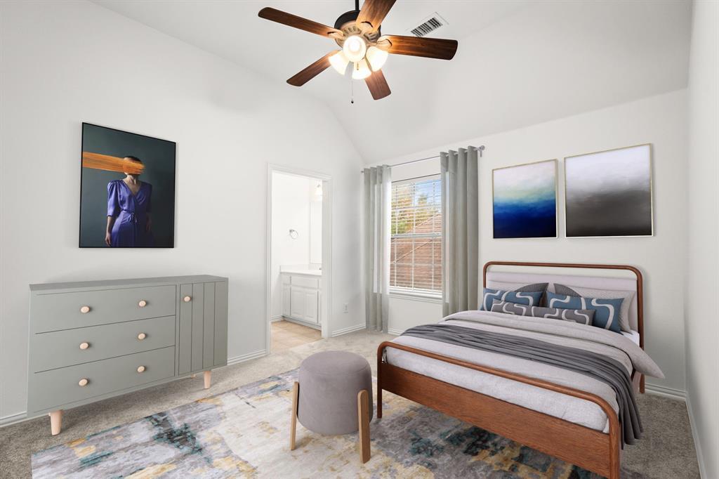 Bedroom / BathroomBuilt-in Cabinets, Ceiling Fan(s), Ensuite Bath, Jack & Jill Bath, Solid Surface/Non-Natural Type, Separate Vanities, Split Bedrooms, Walk-in Closet(s)