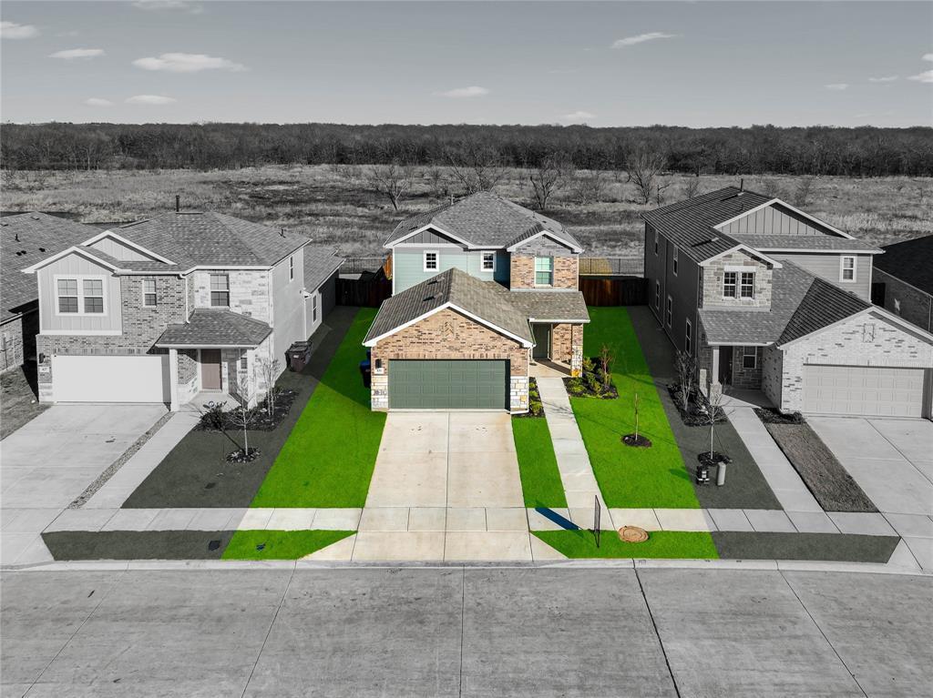 Welcome to this beautifully designed, built in 2025, two-story home in the desirable Ambergrove at Whiteside Village community. Thoughtfully laid out for both everyday comfort and effortless entertaining, this 4-bedroom, 2.5-bath residence offers 2,003 square feet of modern living space with a bright, open-concept main level. The kitchen anchors the home with a spacious island, walk-in pantry, solid-surface countertops, gas range, and seamless flow into the dining and living areas. The private first-floor primary suite provides a relaxing retreat, complete with dual sinks and a generous walk-in closet. Upstairs, three secondary bedrooms, a full bath, and a versatile loft offer flexible space for guests, a home office, or game room. Additional features include first-floor laundry, luxury vinyl plank flooring, a covered front and rear porch, fenced backyard, and a two-car garage. Ideally situated near a greenbelt with a view and no backyard neighbors, and access to community amenities including walking trails and a playground. Conveniently located within Royse City ISD. No MUD or PID. Move-in ready and designed to fit today’s lifestyle. Schedule a showing today!