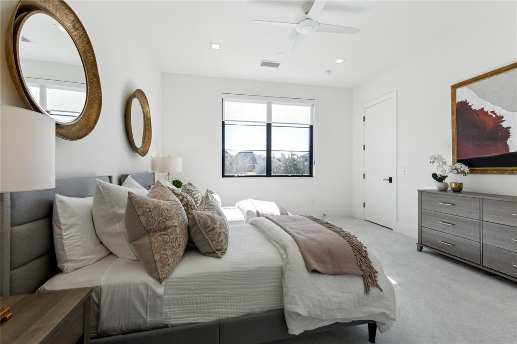 An incredible opportunity to own in the prestigious guard gated community of Wimberly Place, the only gated luxury community in Allen. A true custom offering with unique privacy and top-of-the-line construction throughout on a premier Twin Creeks golf course lot. This newer construction estate maximizes its footprint while leaving plenty of grass for entertaining and outdoor enjoyment. The home reflects today’s most desirable design trends and timeless appeal, blending transitional and modern accents. Enter through tall French iron doors into a light-filled interior where floor-to-ceiling glass showcases the resort-style pool and outdoor living areas, perfect for rest and relaxation. Chalky white museum-smooth walls and wide-plank white oak floors create a gallery-like backdrop for art and beautiful everyday living. The open kitchen, breakfast area, and family room connect seamlessly with a large walk-in bar, theater, and butler’s pantry- ideal for hosting or quiet nights in. The oversized primary suite offers a private retreat with spa-like ensuite bath and enormous closet, while a separate junior primary in-law suite sits on the opposite wing for privacy. Upstairs, a spacious lounge and game area connect to three well-appointed ensuite bedrooms, a secondary laundry room, creating an ideal layout for modern living. Built with extraordinary attention to detail and structural integrity by the sellers, including over 100 piers, foam insulation, concrete tile roof, imported stone flooring, select white oak floors, level 4 countertops, Wolf-SubZero appliances, built-in Miele coffee maker, two dishwashers, designer lighting, and tankless water heaters. Priced below recent sales and ready for immediate occupancy. An exceptional opportunity in highly regarded Allen ISD and the exclusive gated golf course community of Twin Creeks, while being close to all major highways, shopping and dining in the DFW metroplex.