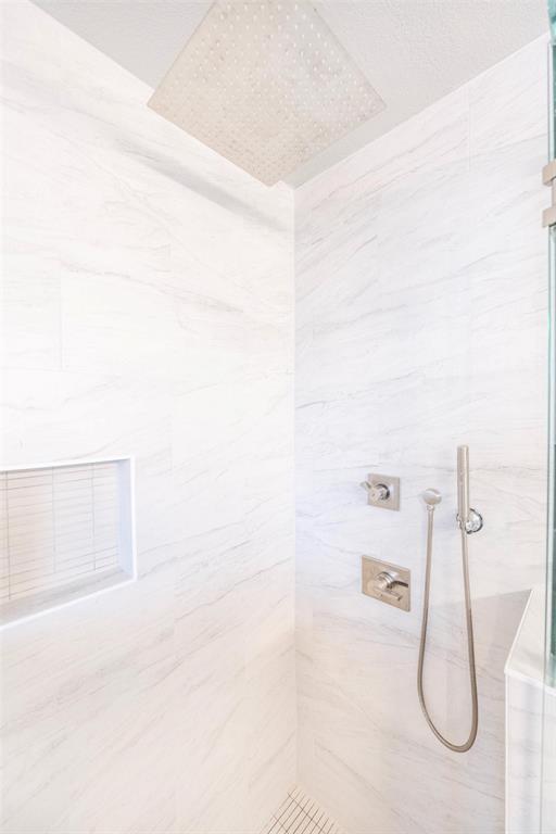 The home includes a full-size washer and dryer, updated bathrooms, modern light fixtures and ceiling fans, new window shutters, fresh paint, and new attic insulation for improved energy efficiency. The luxurious primary suite offers a spa-like ensuite bath with a walk-in shower and soaking tub.