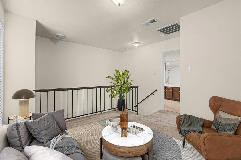 Charming one-bedroom studio condo in a small, well-maintained complex located in a desirable neighborhood. The downstairs features a formal living room highlighted by a cozy corner wood-burning fireplace, along with a designated dining area and breakfast bar that opens to the kitchen. Dark laminate flooring enhances the entry, living, and dining spaces. Upstairs offers a spacious bedroom with an adjacent full bath, plus a versatile bonus area ideal for a home office, reading nook, or second living space. A convenient half bath is located downstairs for guests. This corner unit includes one covered, designated parking space directly in front of the condo. Ideally located near freeways and shopping. Shows beautifully.