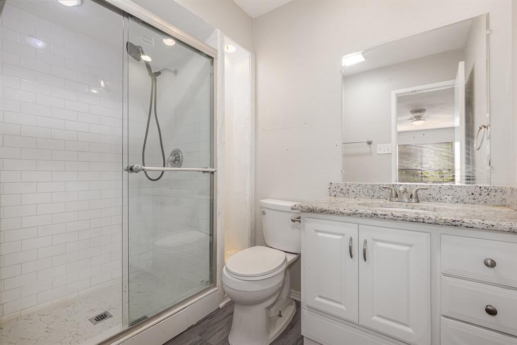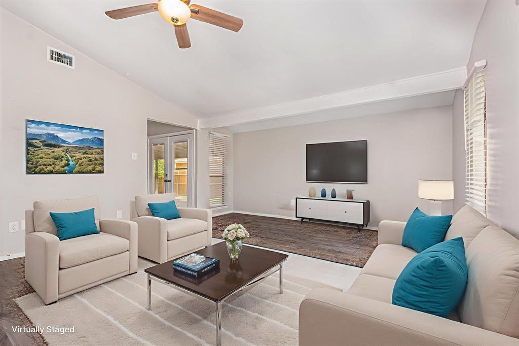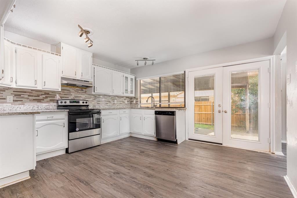 Great home located in West Plano, perfect for first time home buyers or your first investment property. Offering 3 bedrooms, 2 full baths, an oversized living room with a cozy wood burning fireplace, low maintenance flooring, neutral kitchen with white cabinetry, granite counters, glass mosaic tile backsplash, and flooded with natural light! Primary bed features an ensuite bath with an updated seamless shower with subway tile Convenient rear drive with alley access. NOT FOR LEASE!