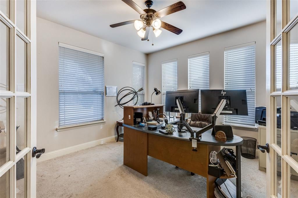 Welcome Home! Located minutes from shopping, restaurants & easy access to Highway 75, this community offers a large pond for fishing, walking trail, and playground. Impeccable drive-up offers an attractive brick and stone elevation. Inside, you'll find a floor plan that flows beautifully for family living, entertaining and working from home. There's a great deal of natural light, tall ceilings and your private home office with beautiful french doors. The very spacious kitchen is perfect for large gatherings and is open to the grand living and dining space. The primary retreat is on the main level and offers a bench seat, perfect for curling up with a good book plus an ensuite bath and impressive walk-in closet. Upstairs you will find a secondary living space which could be the perfect gameroom. In addition, you will find 3 additional bedrooms and a huge media room. There is a great deal of storage in this home. Garage is 2 .5 car with large space for golf cart or just storage. The upgraded extended covered patio offers another space for gathering with friends or relaxation after a long day. The backyard is large enough for a pool.