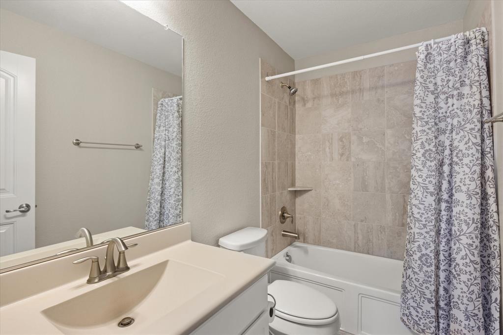 Beautifully maintained two-story home on a desirable corner lot in a culdesac offering lots of space. This 4-bedroom, 4-bath residence features a timeless brick and stone exterior and elegant interior details including crown molding and arched doorways throughout. The main level features the primary suite with dual sinks, soaking tub, separate shower and walk-in closet. A second bedroom and bath along with an office. The office has charming french doors and is currently being used as an exercise room. You'll also find an inviting eat-in kitchen with breakfast bar, gas range, pantry and crisp white cabinetry that opens seamlessly to the living area. The laundry room sits between the garage entry and kitchen. Finally, you'll find a generous storage area under the stairs. Upstairs, you’ll find 2 bedrooms, two full baths, plus a generous second-floor family room ideal for play space and a media room. You'll also find an additional hall closet outside each bedroom for more storage. Thoughtfully designed and well maintained, this home offers both comfort and versatility in a prime setting. Low yearly HOA fees maintain the community pool, playground and park. This neighborhood is just a short drive from shopping and restaurants.