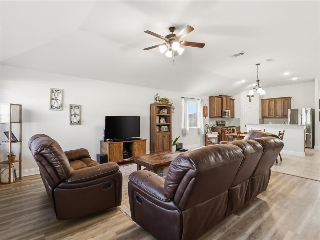 Built in 2018, this charming 3-bedroom, 2-bath home combines modern comforts with small-town Texas charm! Step inside to find an open-concept floor plan that effortlessly connects the living, dining, and kitchen areas—perfect for entertaining guests or relaxing with family.