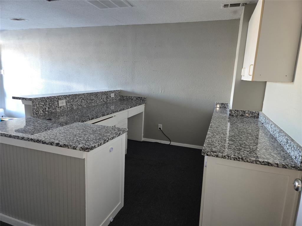 Position your business for success in this highly visible front-facing office suite located along the high-traffic Wilshire Blvd.in Burleson. Suite G offers 771 sq. ft. of well-designed space with its own private entry, making it ideal for professional or service-based use. The suite offers a welcoming lobby and reception area, a private office layout, and a convenient storage room & restroom, providing both comfort and efficiency for daily operations. Exceptional street exposure and easy access create a strong first impression for clients and customers alike. The front office space is 14' x 12'; the back office space is 16' x 12'; and the Lobby with reception area is 24' x 12' with granite countertops and great cabinet space. This is a fantastic opportunity to lease a professional space in a fabulous, high-demand location with excellent visibility and accessibility. Deposit is $1600.