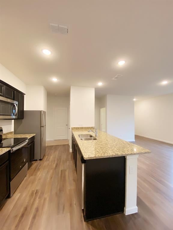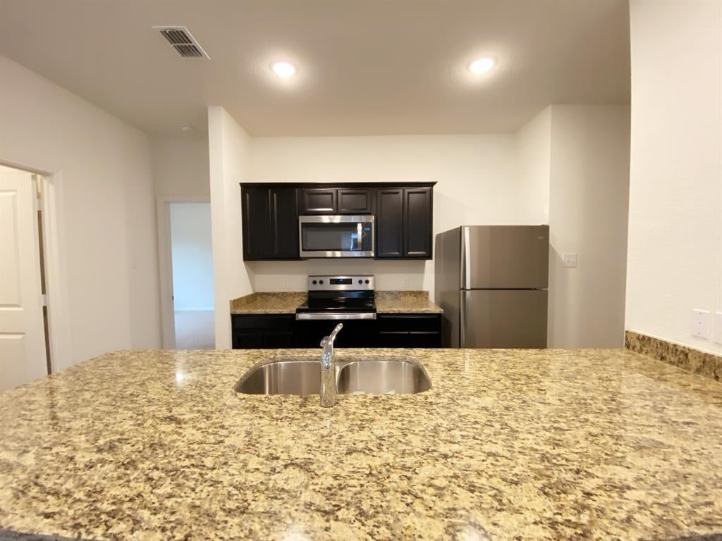 **Motivated Owner** MOVE IN READY!! 1 STORY 3 bdrm, 2 FULL bathrooms, Energy efficient home. This great open layout plan offers stainless appliances, refrigerator and dryer, blinds, full sod & irrigation system! Spacious bedrooms with master split for privacy, offers large garden tub and walk-in closet. Kitchen offers island, granite counter tops throughout. Huge backyard with plenty space for kids & pets to enjoy. This home is a must-see!