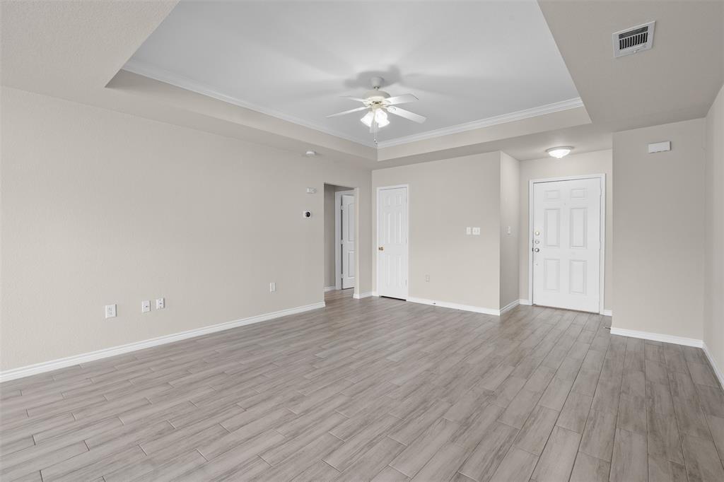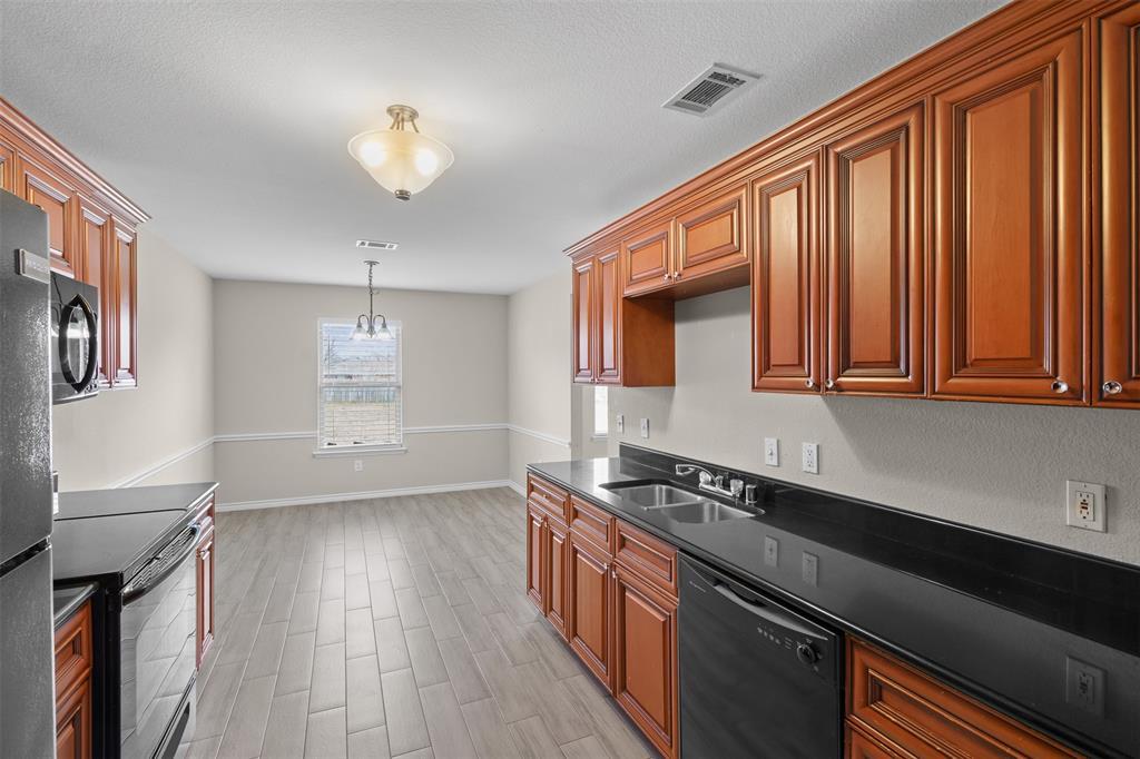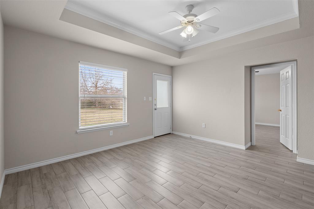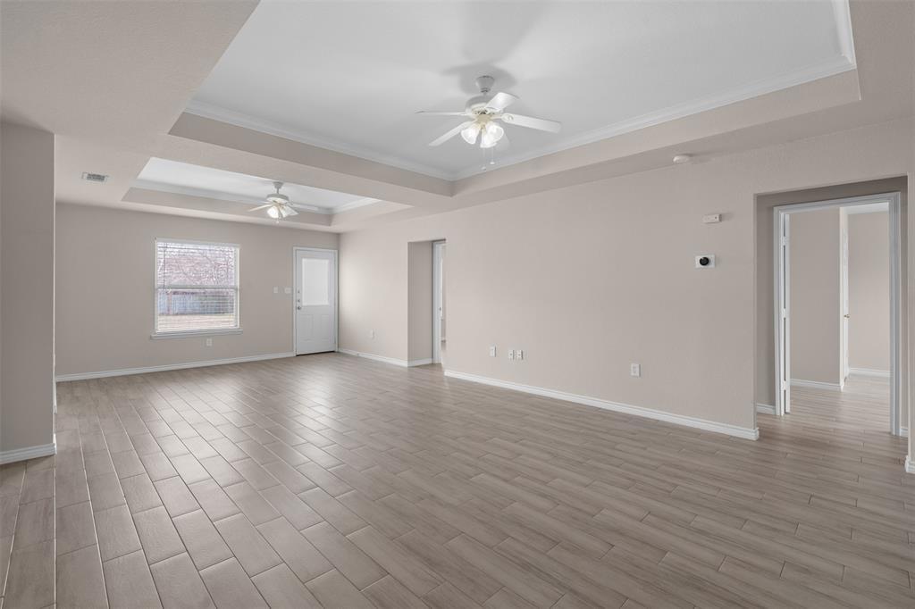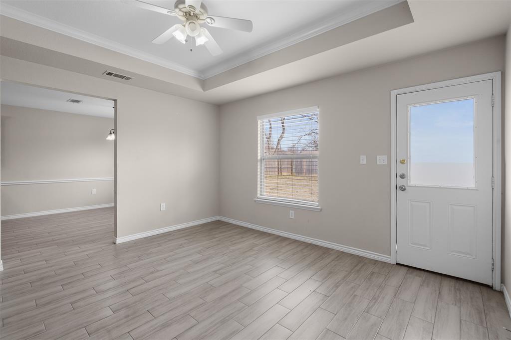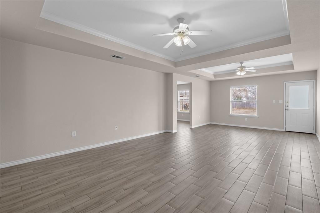 Looking for a move-in ready home with a big yard and small-town charm near Downtown Aubrey? This well-kept 3-bedroom, 2-bath home offers 1,408 sq ft of easy, comfortable living on an oversized .31-acre lot. Inside, wood-look tile floors run throughout, making cleaning simple and giving the home a clean, modern feel. The extra-large living room with a tray ceiling is perfect for movie nights, game days, or hosting friends. Mornings feel calm here, with soft light filling the open living and dining space. The spacious pantry, separate laundry room, and smart layout make daily life easy. Outside, the huge backyard has room to play, garden, entertain, or add a future pool. Built for peace of mind, the home includes a brand-new roof (2025), a 1-car garage, and a location close to schools, local shops, and quick routes for commuting.